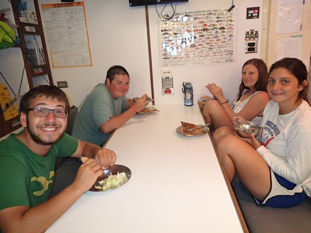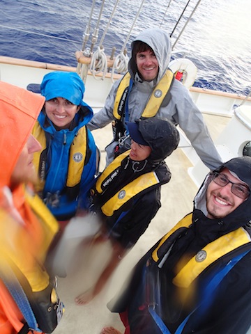 Tonight, I realized that the day had been overtaken by the four classical elements: earth, wind, fire, and water. First, Wind: We took our exam in order to be able to use VHF (Very High Frequency) Radios to send messages through the air (a bit of a stretch, but bear with me). Next, we had Student Leadership Development, where we discussed personality types based on these four elements. Second, Water: Our second squall of the semester hit us, but luckily, it was a very minor one. We have quite a few people on board who were happy to finally make use of their foul weather gear and came up on deck for our brief shower. Third, Fire: Unfortunately, our chefs forgot to turn off the smoke detector before cooking dinner’s quesadillas, so we had an accidental fire “drill.” Fortunately, it was just a little smoke, and the quesadillas were absolutely delicious, which brings me to the fourth element: Earth. Due to the rain up on deck, we ate our dinner closer to the earth, down below in the saloon, which is near sacrilegious on Argo and is never to be spoken of again. All in all, today was a good (and well-rounded) day.