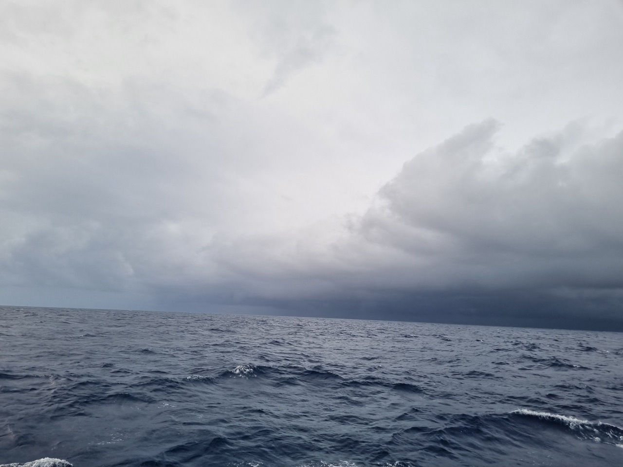 It has been a hot minute since our propellor broke — and since the last day where I wrote the blog. In 31 days, we’ve come far, both in terms of growth and physical distance (5600 nm is a mileage I could not even begin to understand). Watch last night was an experience, to say the least. Watch team two was on the 12:00-4:00 AM watch, where we were awoken late because watch team one was sail handling. It was squalling. Everyone was in their foul-weather gear. Ben came down to wake us up with, “It’s been raining all of our watch. Put on your foulies. You’re gonna be cold.” I scrambled to put on my tight-in-all-the-wrong-places bib and obnoxious red-yellow jacket. I was expecting thunder and lightning, paired with a torrential downpour. I was met with a light drizzle. I mean, he wasn’t wrong – it did also end up ‘raining’ for our entire watch too, but more like the type of rain where it’s not strong enough to need to wear your hood but still enough to make your head wet if you take it off. Morale was low, as it is on most rainy night watches. We did some sail handling, I quite honestly cannot remember which sails we put up or took down, but I am confident we gave the main staysail a starboard tack (new high side, we’ve been on port tack since the start of this passage). Boy was I cold – my bib did not do its job, and Elise’s rain pants were far from waterproof. I wrote a song about us and the rain while waiting to ease the sheet. Elise and Fargo were the main subjects. It went something along the lines of “the rain fell down on Elise’s head. She pulled her foulies from her bed – tomorrow will be wet again. Tonight we’re warm and dry.” Fargo’s was more like: “The rain fell down on Fargo’s skin, no foulies on is such a win – tomorrow will be wet again, tonight we’re warm and dry.” Fargo has not worn a shirt since the start of this passage – it has become a challenge that he and Kirby are powering through – even during cold drizzles. The songs were fun, and we could not stop laughing; the only people to have ever laughed at 1:45 AM at these exact coordinates through a never-ending drizzle in the middle of the Pacific Ocean. The second half of watch was much better than the first, morale was on the up, and the drizzle stopped, though it’s always so heartbreaking to have to do wakeups and tell the next sleepy watch team they should probably take out their foul weather gear.
