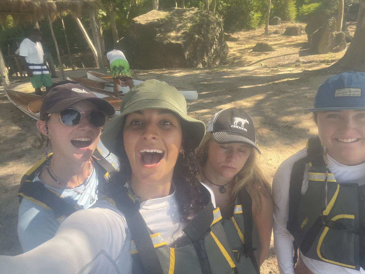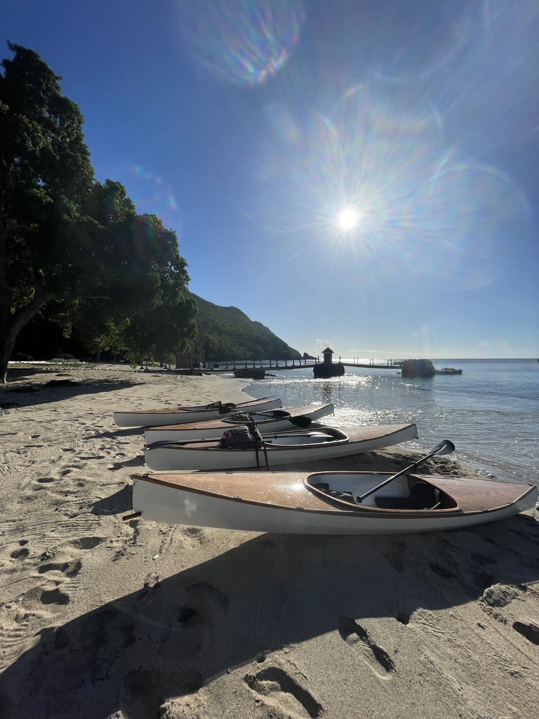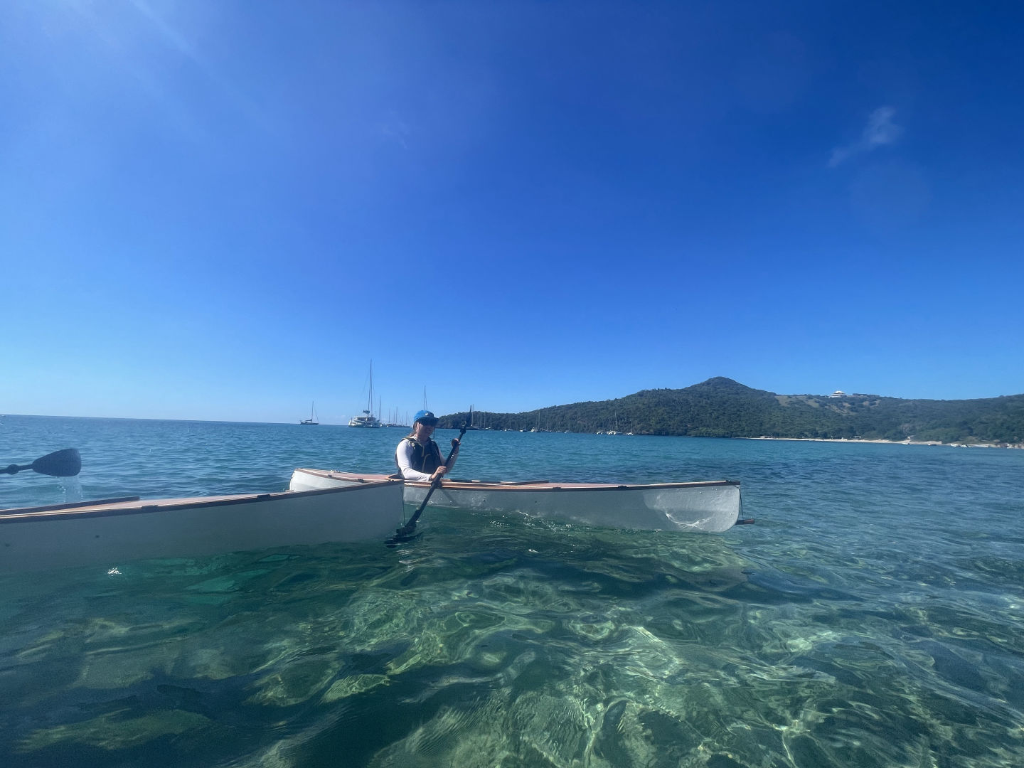 A cheeky little rest later, group 2 swung themselves onto the dinghy and went for another dive in the same dive spot while group one went onto the shore. We were greeted by the lovely guides of a watersport club who took us on a kayaking trip along the bay. I had never done kayaking before, so this was quite exciting 🙂 Everyone absolutely killed it! We’re all natural! These kayaks weren’t just any kayaks. They had glass windows underneath them, which allowed us to peek underneath into the water as we were kayaking. I saw a very speedy turtle, lots of French grunts, and something that might’ve been a pufferfish, but this time, I was too speedy to properly check it out. Peep at the pictures to check out our kayaking adventure.