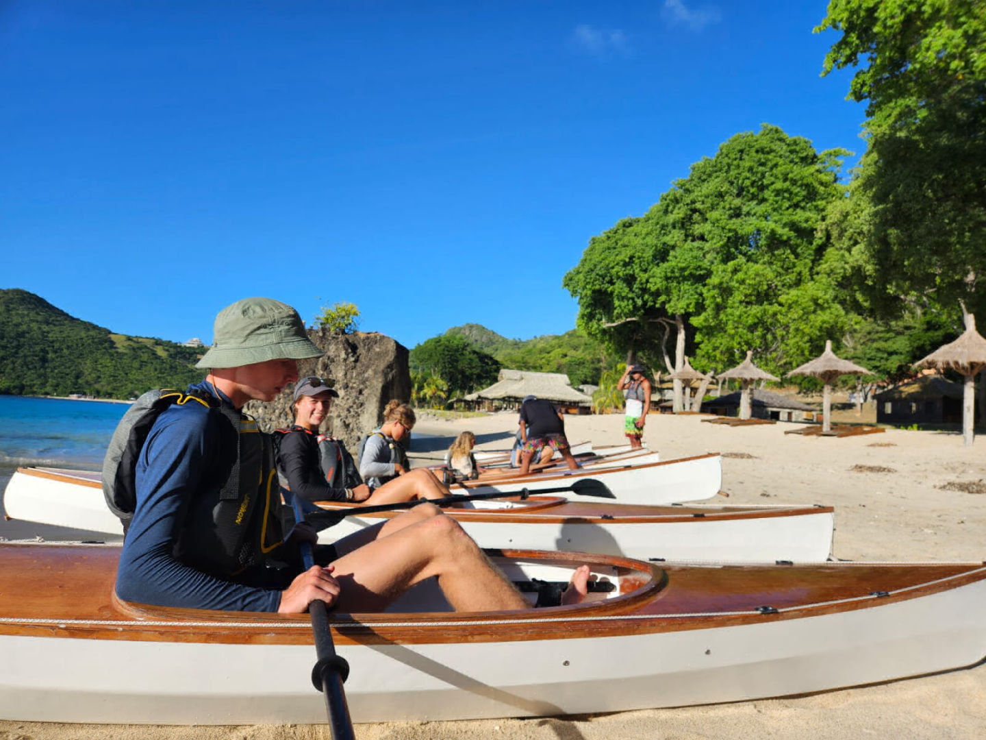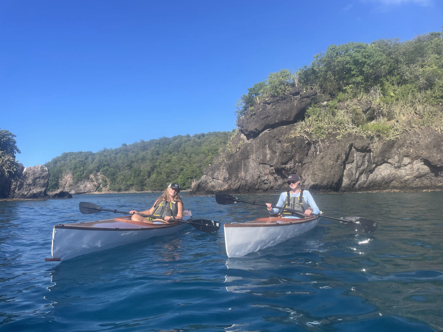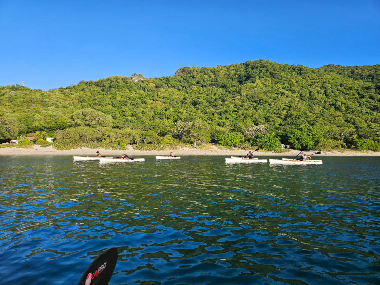 A cheeky little rest later, group 2 swung themselves onto the dinghy and went for another dive in the same dive spot while group one went onto the shore. We were greeted by the lovely guides of a watersport club who took us on a kayaking trip along the bay. I had never done kayaking before, so this was quite exciting 🙂 Everyone absolutely killed it! We’re all natural! These kayaks weren’t just any kayaks. They had glass windows underneath them, which allowed us to peek underneath into the water as we were kayaking. I saw a very speedy turtle, lots of French grunts, and something that might’ve been a pufferfish, but this time, I was too speedy to properly check it out. Peep at the pictures to check out our kayaking adventure.