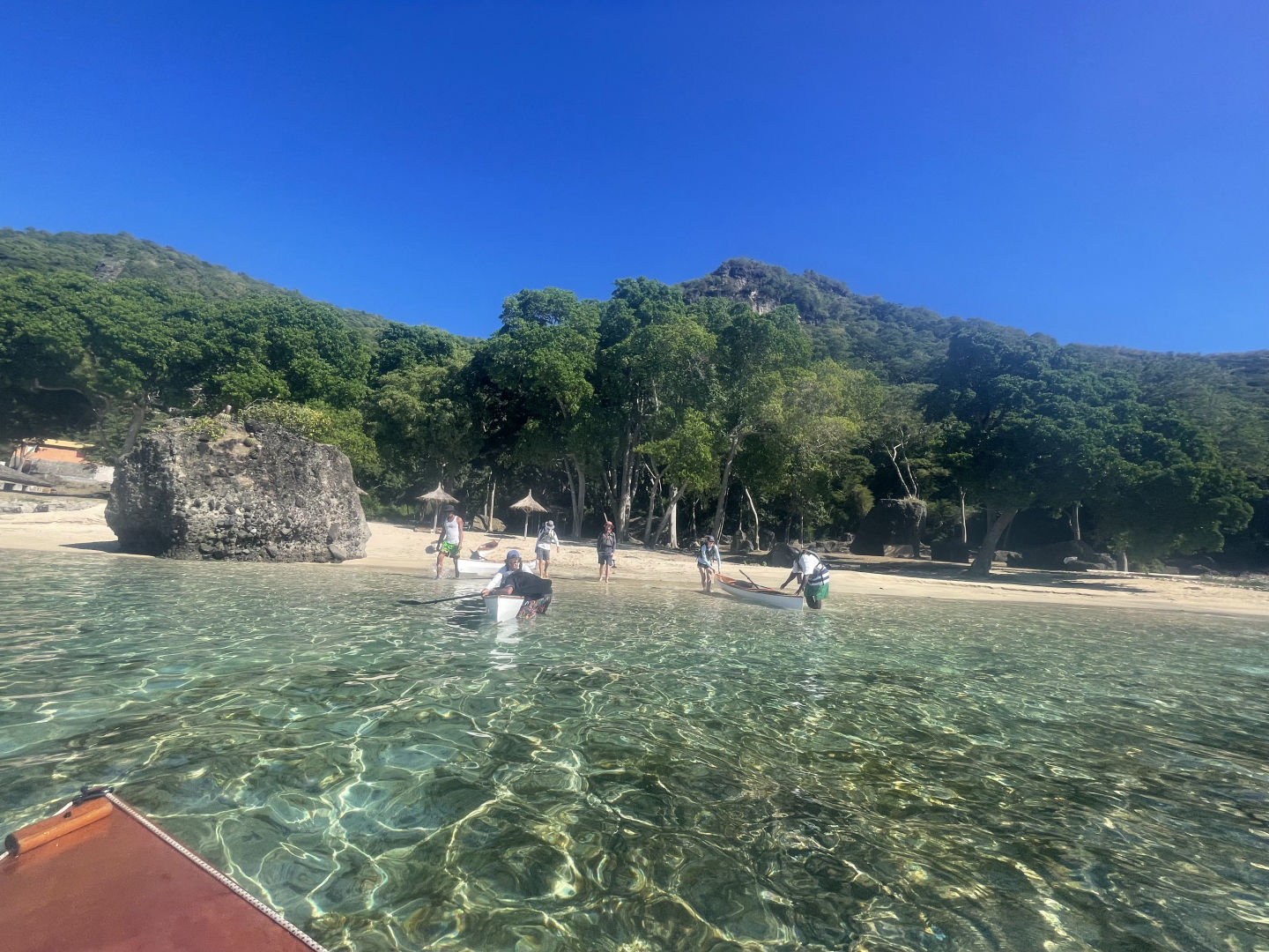 Once everyone was ready to get it movin movin, we put on our sunscreen, got our scuba gear ready, and headed out with the dinghy to the edge of the bay we’re currently staying at.