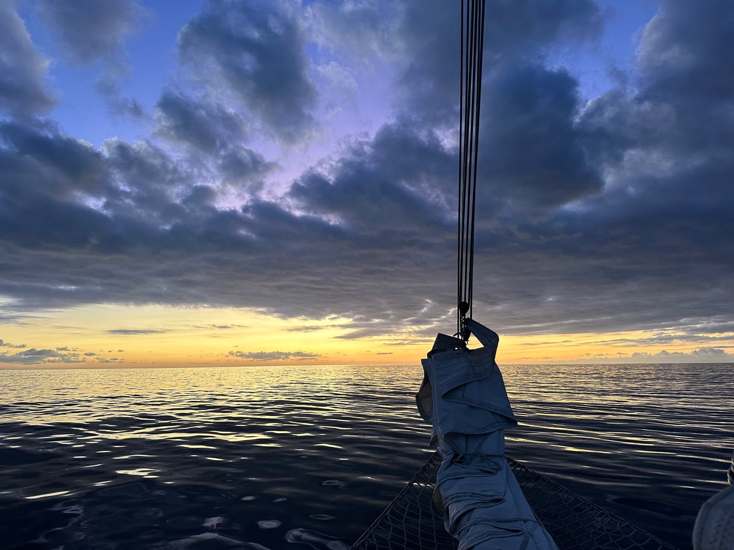 Today marks the beginning of our three week passage to Palau from the initial port of where our trip started, Port Denarau, in Fiji. After a little over two weeks of learning the basics of sailing and scuba diving, everyone seemed to be in a jovial mood with both anticipation and uncertainty about the challenges that lie ahead. After a hearty, quick breakfast of oats with assorted fruits and toppings, we continued provisioning Argo by storing all of the scuba gear and sail covers as well as finishing putting away the remaining food rations that the staff purchased for us the day before, among a multitude of other jobs and checklist items. Once underway, we returned back to somewhat of a normal routine by having classes in both Marine Biology and Seamanship. For the latter, our instructor, Gabe, taught us the “knot of the day,” which was the clove hitch. Gabe elaborated on the versatility of this knot in that it was both effective in holding heavy diving gear and that it was extremely easy to undo in one swift motion by pulling on one end of the knot. After class, as watch team one was being relieved from their watch around 6 pm, everyone took a moment to embrace the beauty of Fiji with the beautiful picturesque sunset. With the glassy, towering waves in the distance, it is in these moments that regardless of how difficult or easy our day has been, everyone seems to come together to admire just how fortunate we are to be here. Lastly, for dinner, Head Chef Addy prepared a tasty vegetable salad and quinoa with a chocolate brownie dessert. Despite being at a smooth sailing state, I still managed to somehow drop my meal on the serving line as the boat rocked back and forth. Grieving the foolishness of my mistake during the meal, I decided that my mishap would be a good segway into the “squeeze question of the day” in having everyone briefly summarize their most embarrassing moment in 30 seconds or less. Highlights from the stories told include beet-red vomit, pee-wetting stories, oblivious relationship social cues, and mispronouncing and misconstruing foreign language words with expletives in English. I thought it was a good question, and I like to think that we all got a kick out of hearing all of our most vulnerable moments. All in all, today marks a pivotal moment in our journey so far at sea, and I am excited for what is to come in the next few weeks.