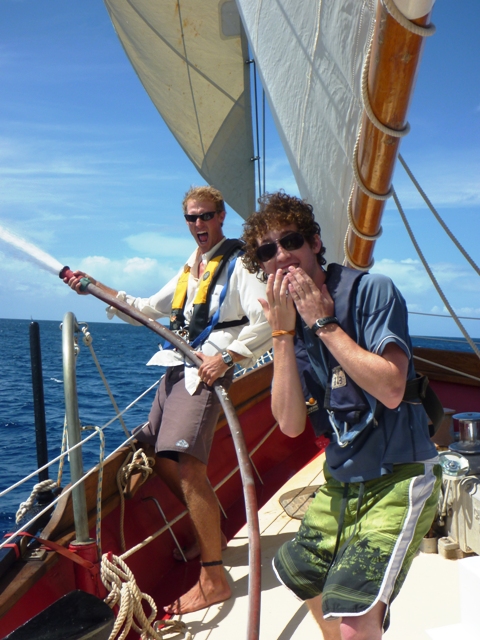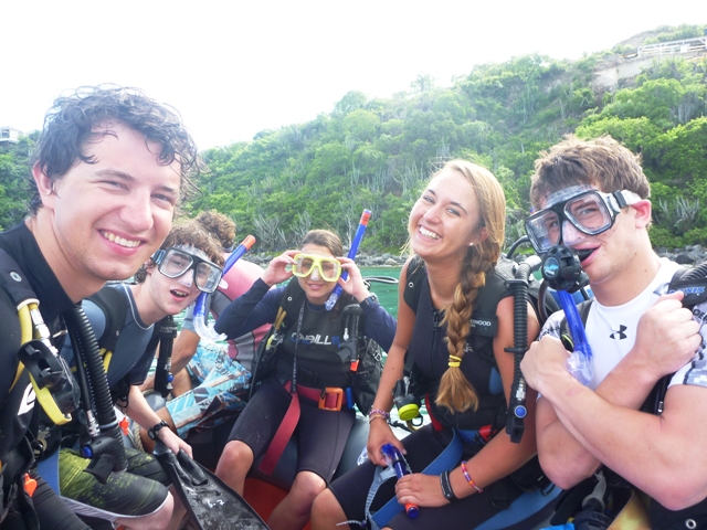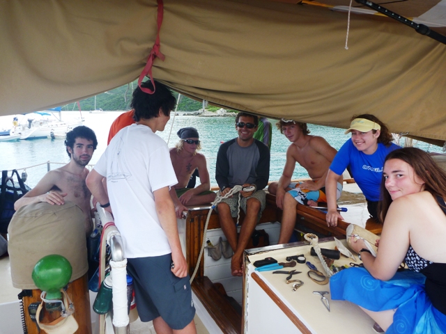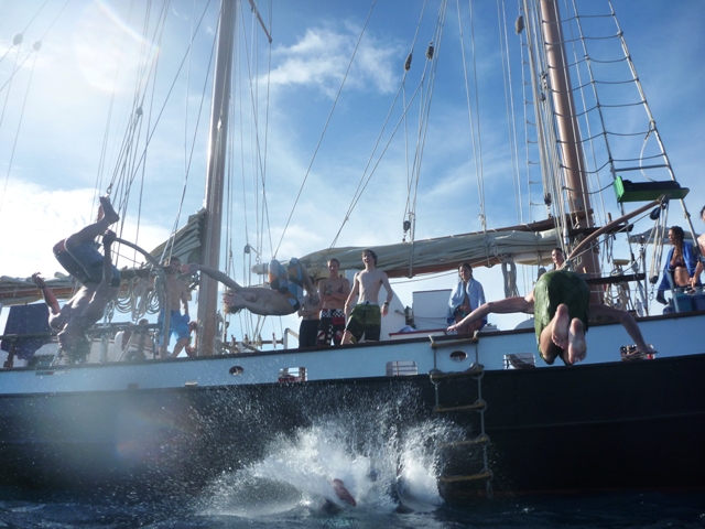 Ok, so to start, this voyage is non-stop action, work, and fun. Only day 4, and I already feel like I learned so many new things. Anchor watch last night was so peaceful and relaxing. There was no rain, and the sky was filled with an unbelievable amount of stars, you don’t see that in New York – and my anchor watch buddy was good conversation and company. The day started with our second dive. Getting to the bottom of the surface and seeing colorful fish swim out from the coral for the first time was so amazing. I can’t wait to see what else lies beneath the surface. The fun only continued when we got back to our boat, Ocean Star. Doing flips and dives off the boat was awesome, especially climbing up the ladder rung on the side of the boat, and jumping off was so much fun. The boys taught me a lot of new moves you can do while jumping into the water – sweet. After lunch, we set sail and made our way over to Mountain Point. Learning more sailing skills was confusing, but getting the hang of it more each day.