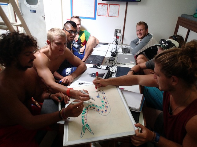Life underway was, as usual, today, save for a few events that made the day a little different than the rest. We had our first Emergency First Responder (EFR) class, and Marina taught us how to assess and respond to a situation needing first aid. We learned how to identify different distress situations a patient may have and which methods to apply. CPR was covered extensively, and we had hands-on practice as well. We will have another class on EFR on Thursday and a test when we get to Mauritius to get our certification. The fire alarm was triggered in the afternoon, and we went over the fire drills for our respective watch teams. Many of us joined new watch teams since Cocos Keeling Islands and had to be re-drilled on the different roles that were assigned to our watch team in the event of a fire. During the fire drill, the Captain called for a Man Overboard situation while fighting a fire, and we carried out those drills as well. We were all relieved that we knew our roles in the event of such emergencies and had the added security that a competent crew had our backs if something went awry. Our chef of the day, Sam C., gave a hearty meal of fried rice in the afternoon for lunch and tasty Pad Thai (Thai-style stir-fried noodles) for dinner. In celebration of Annie’s birthday today, our Marine Biology Professor and friend, Carolyn, prepared a delicious cake for dessert.