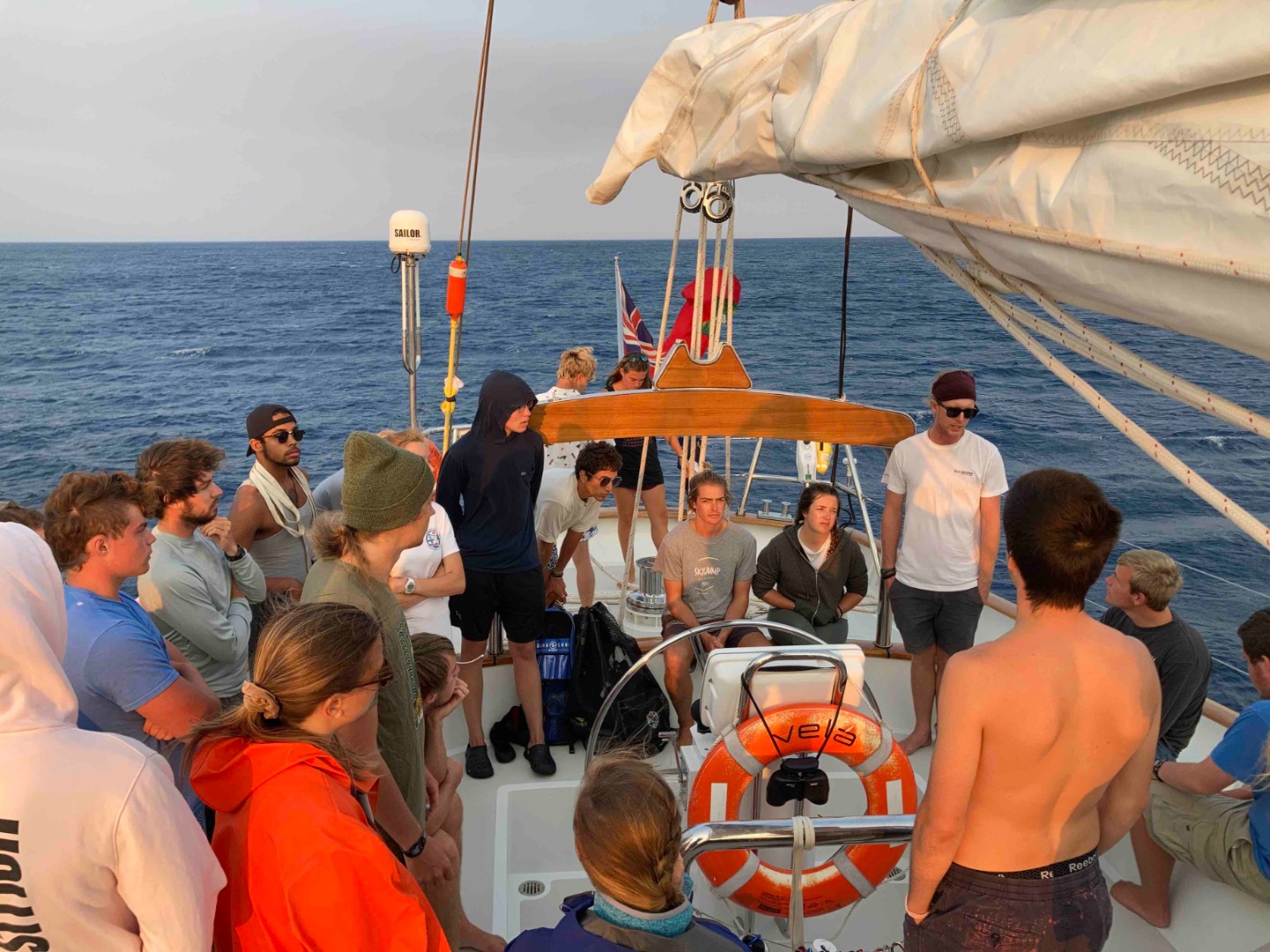 Photo 3: The crew getting our final Staff-led briefing before we begin our Student-Led Voyage to Civitavecchia