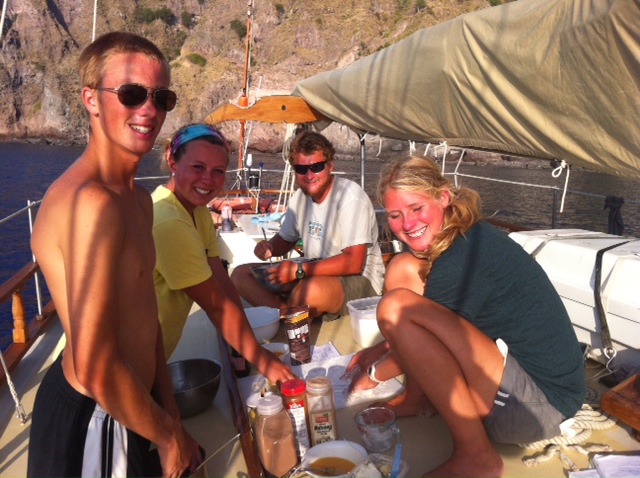 Once we got the sails down and the staff regained some boating knowledge, we started a bit of Boat Appreciation, cleaning the dinghies, oiling the cap rails, and waxing… Ocean Star is looking mighty fine.