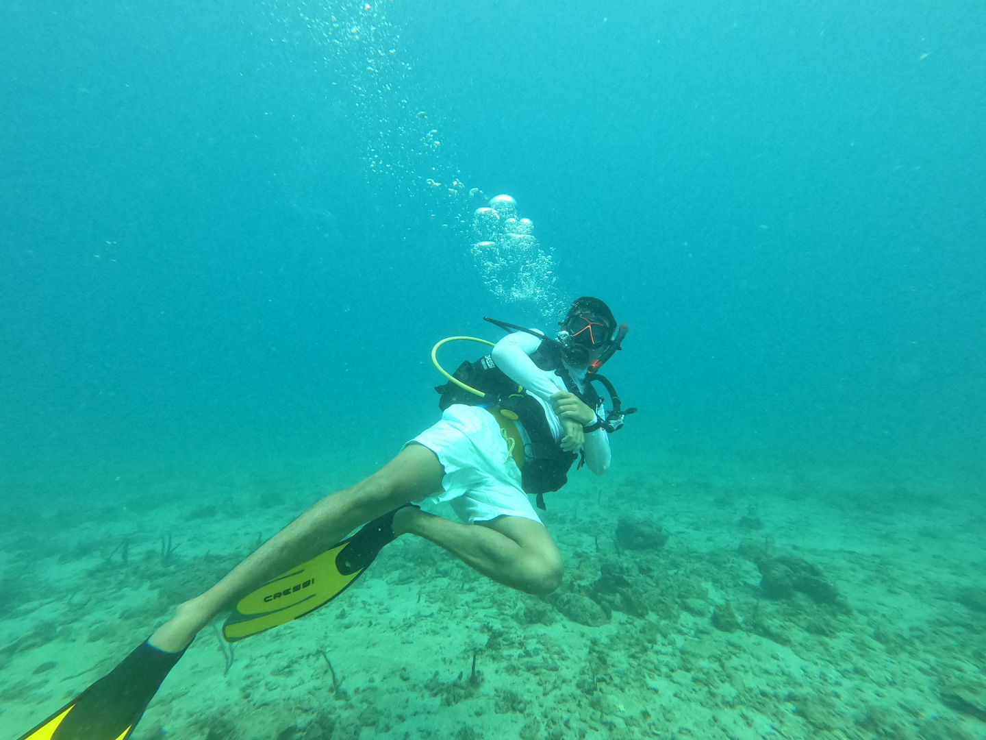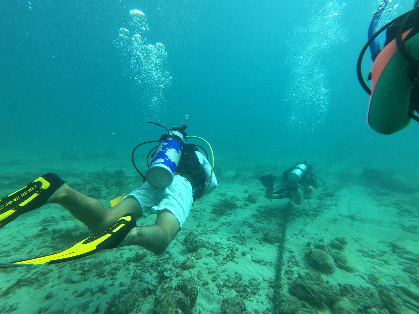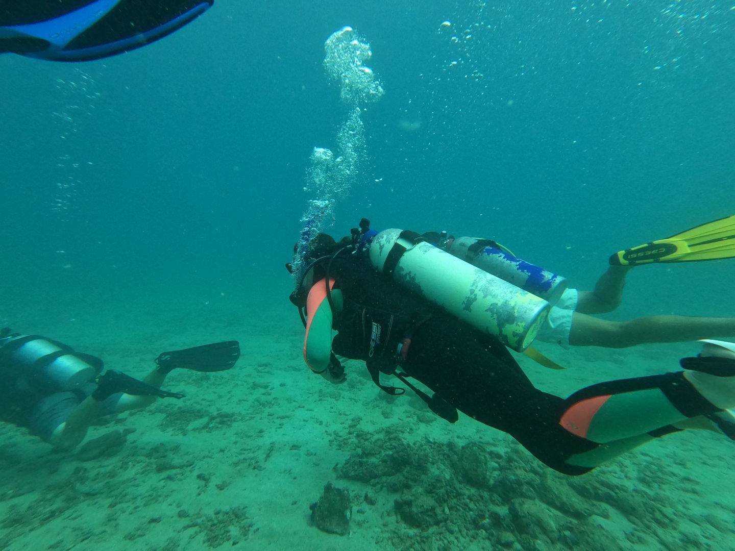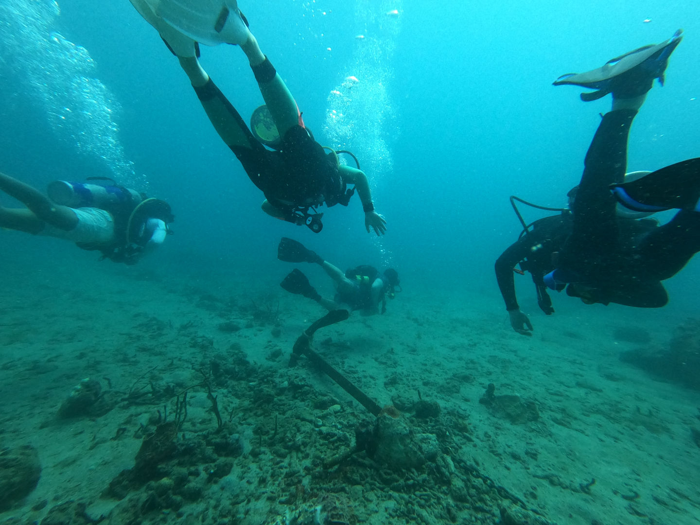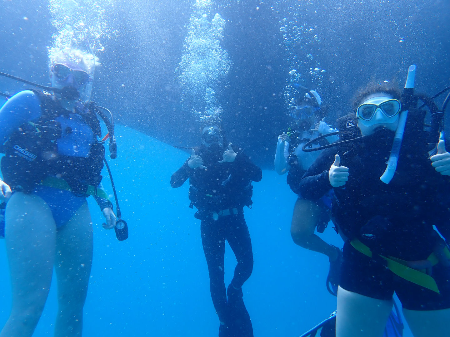 After a long day of excursions yesterday, the urge to stay in bed was quite tempting this morning. My “good mornings” were met mainly with groans for all except Rocco, our head chef today, who sprung into breakfast action. This morning, we were served the most top-tier version of the Seamester brekkie go-to: yogurt and granola. After breakfast and cleanup, the students broke into dive groups for our first “fun dive,”- meaning the dive was not meant to test skills but rather just for fun. This means students were able to bring GoPros and get some awesome underwater shots. While the first group went diving, Zoe, Ben, Sammy, and Hannah caught up on school work and did their best to manage to get the mud off their hiking shoes from yesterday’s very muddy adventure. Rocco, Evan, Jack, Alev, and Ella did the same when they came up from their dive before getting lunch underway. Today, the divers saw lots of fish and an eel!