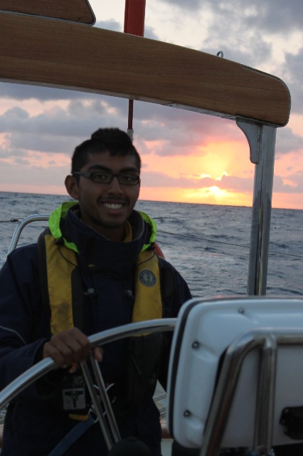 Today was our last full day at sea before we returned to the now-foreign place known as land. The morning started off grey and rainy with the occasional spray over the side, but a little saltwater in the cereal never hurt anymore. Watch Team 2 embraced the pitch and roll to spend their morning on watch, doing their fierce new workout regimen, which has earned them the new title of Swole Patrol. The rest of the crew caught up on sleep or worked on upcoming papers in the saloon. With the end in sight, we are all focused on finishing strong and thinking about what we are going to do on land first or eat first, but I’m sure when the time comes, everyone will be wishing they were back on Argo. Around lunch, the sky began to clear, but the seas had other things in mind and sent some of our delicious spinach casseroles down to Davey Jones Locker. Therefore, none of us wanted to end up like lunch, so showers were performed in the heads-down below, where you now have the daunting task of deciding the optimum stance to take in the small bathroom, rocking from side to side. Before class, Grace and Tegan regaled us with a presentation on Richard’s Bay and a rundown of the activities planned for us while there. We then had our fourth marine biology test that covered marine mammals, birds, reptiles, and the deep sea. I’m sure I’m not the only one who took the test in their best David Attenborough voice. After the test, we had a lecture from Kimi on aquaculture and watched a melancholy documentary on salmon farming in British Columbia. The rest of the afternoon was spent on watch or in the galley, making lovely naan bread or laying in your bunk, contemplating whether a nap or homework is a better way to spend your time. By dinner time, the sky and sea calmed, and we all watched a beautiful sunset with dinner, but before that, we were serenaded one by one by everyone on board with their go-to karaoke song. We heard the Hippopotamus Song by Bryant and Copper’s rendition of Good Morning Baltimore from Hairspray. I flexed the golden pipes with my white boy version of Big Poppa by none other than Notorious G. After dinner, we all cleaned up, got ready for watch or bed, and thought that in 12 hours, we would be on the continent of Africa on the compliant other side of the Indian Ocean than which we started. When it comes down to it, adventure is what you make it. Whether it’s the travel, the discovery, or just the feeling of letting go. The only way we’ll ever find out is to get out there and do it. Enjoy the ride! -Travis R.