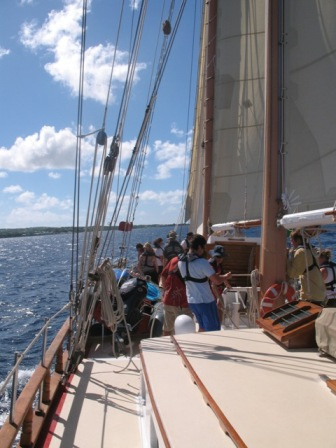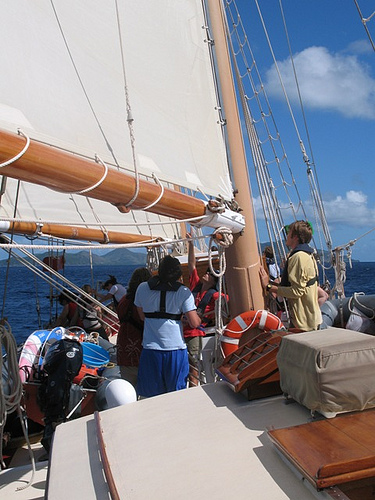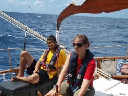 After breakfast this morning, we slipped our mooring in Nevis. This was the first real-time we had Ocean Star under sail. We tacked and jibed in the lee of Nevis for a while to get a feel for the ship. After we became comfortable with the ship under sail, we picked up a heading of 195oM to Grenada and began our two-day trek, which would take us to our furthest point south on this trip.