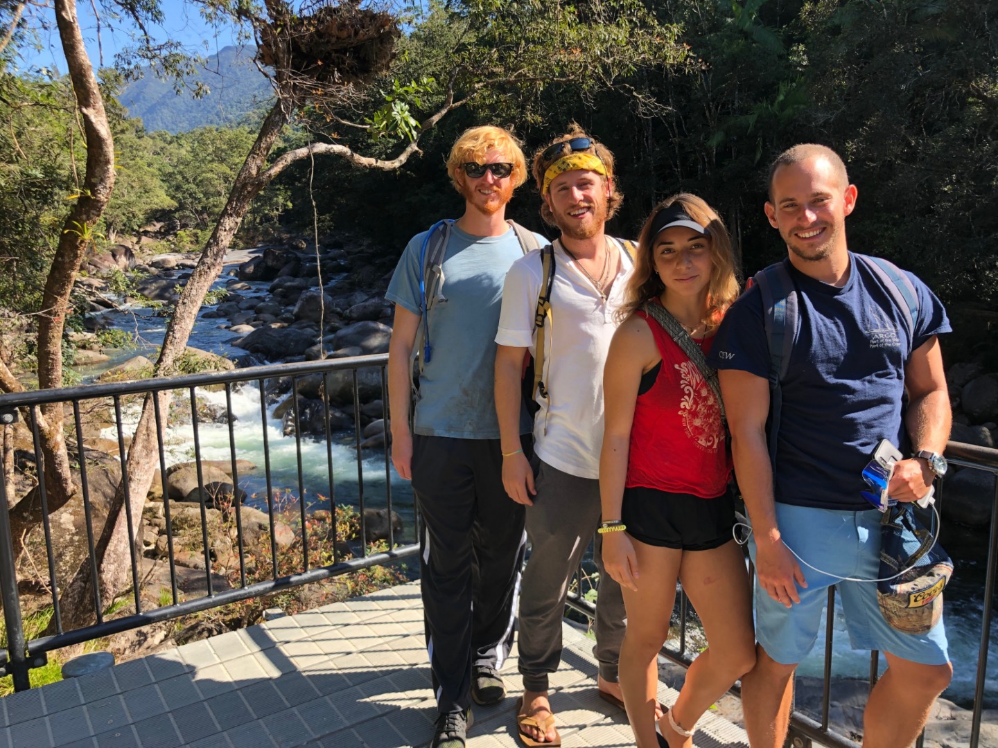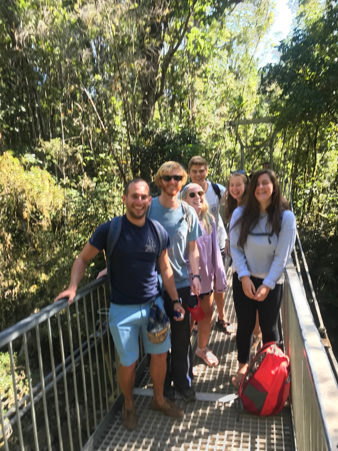 Pictured: Group photo at Alexandra Lookout; smoke ceremony where the guide burned some melaleuca bark and had us walk through the smoke while we asked for blessing and protection for us; Frank, Henry, Lucy, and Raul at Mossman Gorge; Maddie, Cat, and Ryan at the gorge; Maddie getting some sunshine; Sam and Henry at the gorge; Raul, Frank, Kari, Garrison, Anastacia, and Emily on the suspension bridge; Scarry the alpha male crocodile; beautiful Daintree River; Raul enjoying the river tour; a golden orb weaver spider near where we ate lunch; rain forest views and Tom teaching us about the local plants; the beach at Cape Tribulation; Rhea and Emily relaxing; our ice cream made with different tropical fruits (coconut underneath, passionfruit, wattleseed, and black sapote); view from Alexandra Lookout.