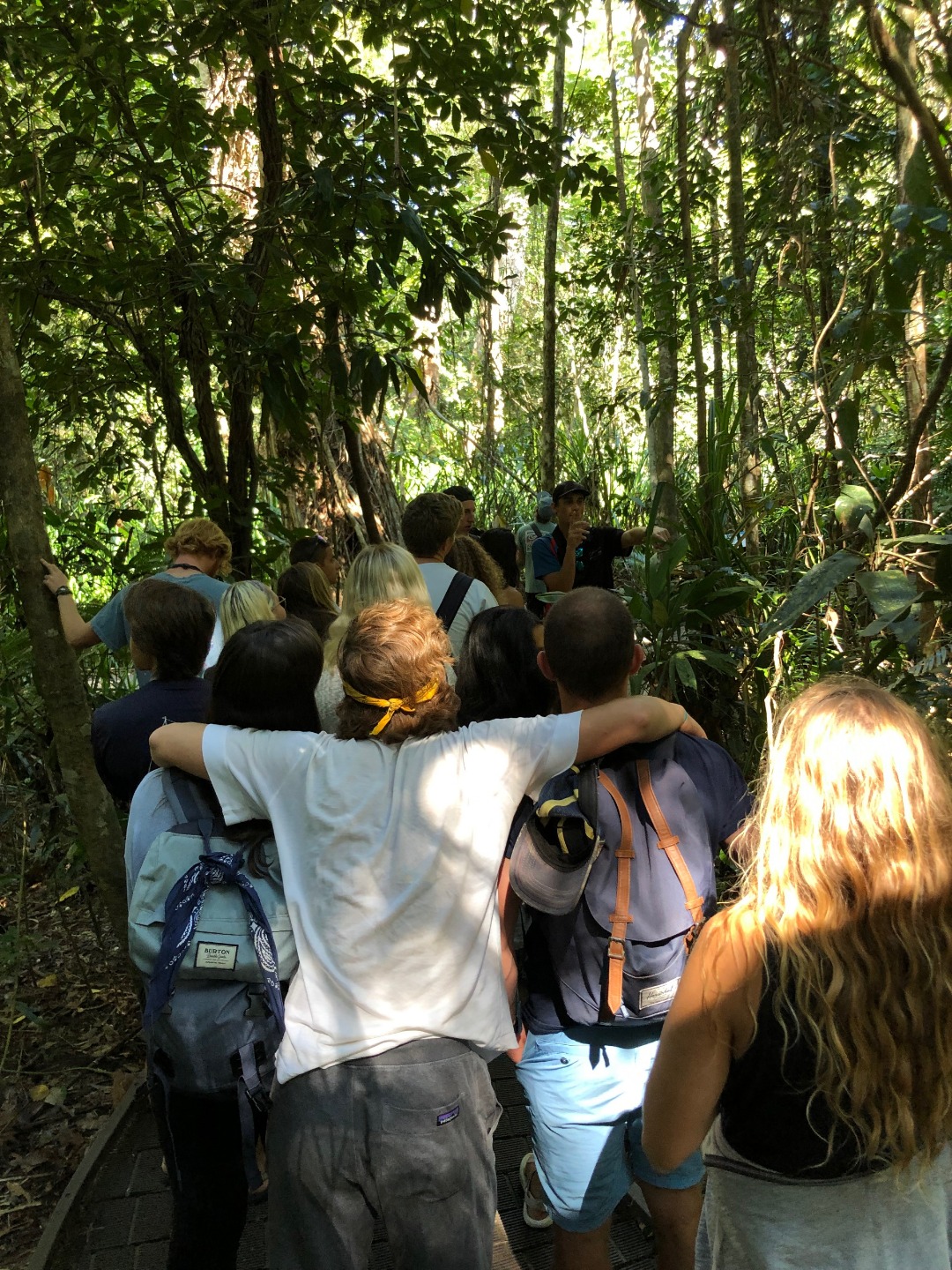An early wake-up signaled the beginning of a long day on the road touring the land that surrounded the city of Cairns. We began the day meeting our tour guide, Tom, near the dock. From there, we drove in a bus to the Daintree rainforest. Keep in mind that this is the oldest rainforest in the world. On the way, Tom explained to us the numerous species of plants and animals that could either really ruin our day or kill us. As we stepped off the bus, of course, the first thing we asked was if the fruits we were just told could kill us were edible. Tom informed us it had an estimated 100 million years on the Amazon rain forest. Upon our arrival, we were guided through a smoke ceremony by a man indigenous to Australia. He showed us the weapons his people used to hunt, the plants they used for medicine, and the clays they used for paint. He then followed with a prayer to the forest, requesting our safety throughout the remainder of our time exploring the forest. We continued down the path to Mossman Gorge, which some people jumped into and swam in for some time. Others remained dry and visited the suspension bridge not too far down from the trail. We left the rain forest for the bus to drive to the next stop of the day.