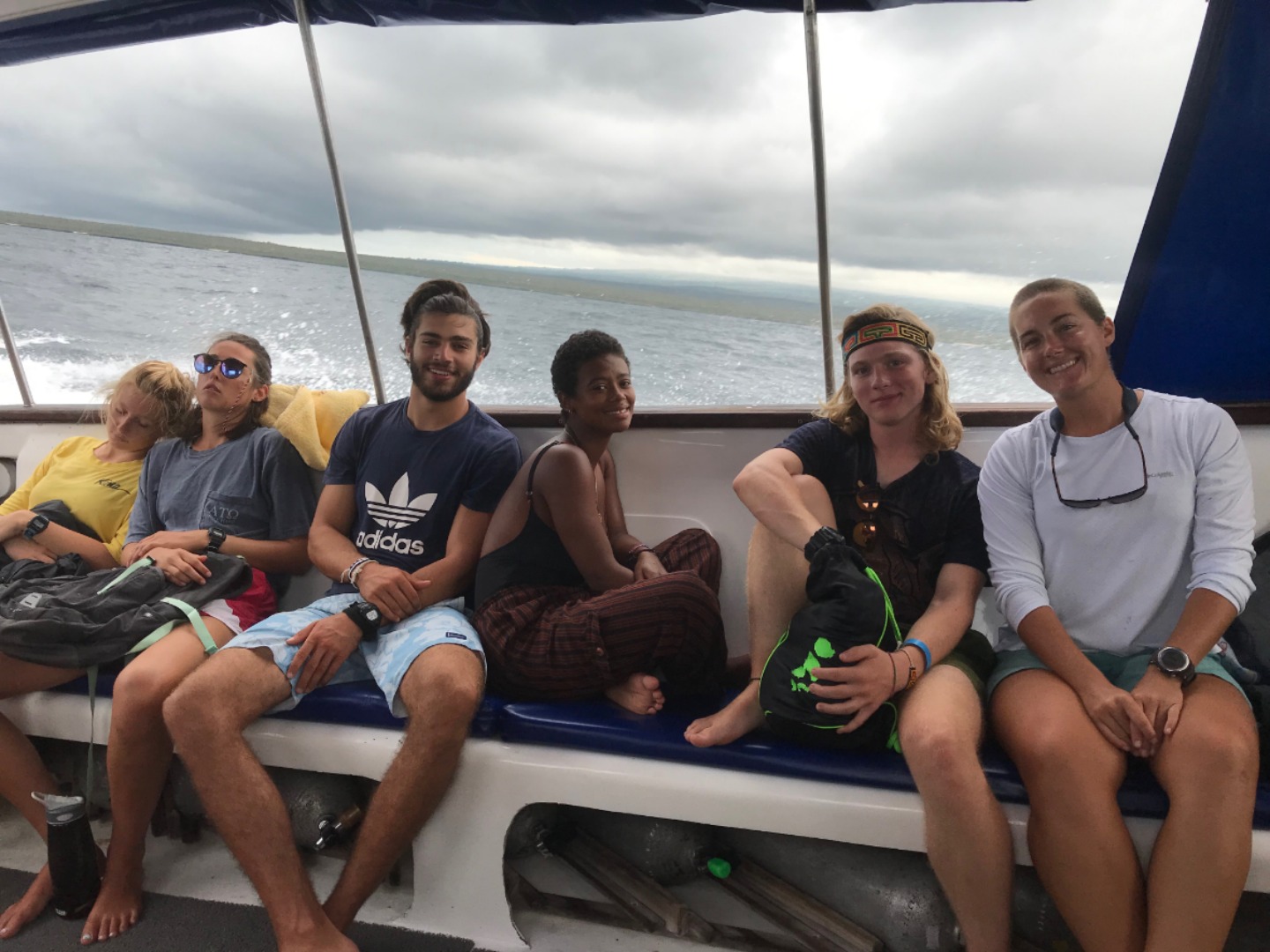 Another day in the Galapagos meant another day of excitement, exploration, and enthusiasm. It was time for group 2 to experience the delights that the underwater world of the Galapagos has to offer while group 1 explored the land. My day involved getting the chance to have a great shark spotting viewpoint from up the rig while attaching chafe gear to the shrouds in preparation for our long passage, but here is what everyone said about their respective days. After a hot afternoon, the students had a sign-out night where most of the group ate dinner together at a nice rooftop restaurant and then sang karaoke together to finish up the evening.
