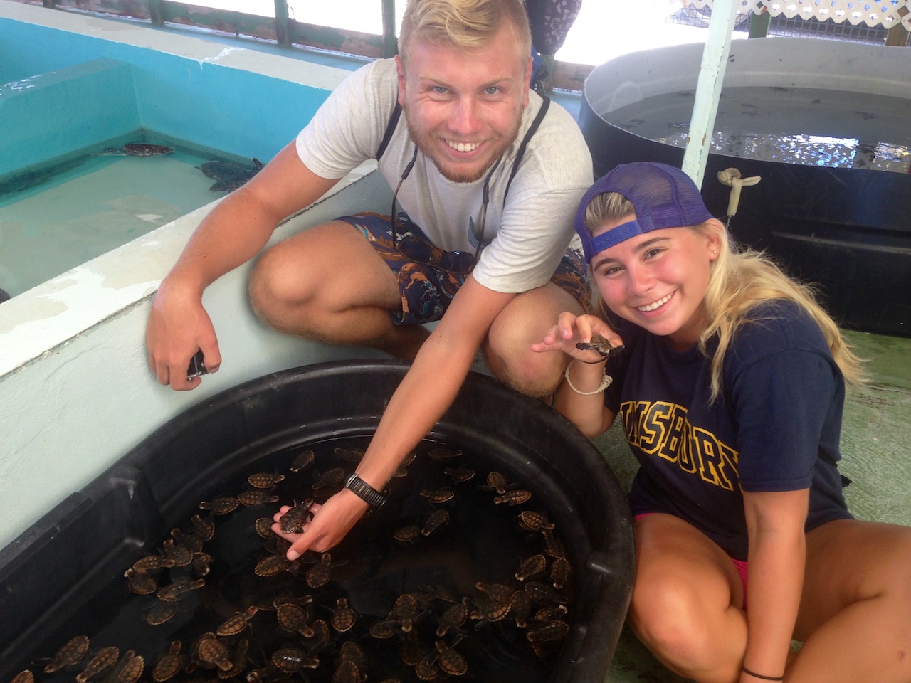 Our next activity was onshore; we went to a sea turtle hatchery where sea turtles are raised and, later on, released into the wild; a benefit of this is giving young turtles a better chance of survival until they are a larger size, as well as the education of the public. We all enjoyed getting to see these animals close up after having learned about them in marine biology class. In the afternoon, we had time to explore the island, eat ice cream and pizza, drink fresh, exotic fruit juices, shop, explore the local beaches, and get to know the locals, which we accomplished in a couple of happy hours.