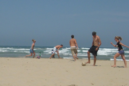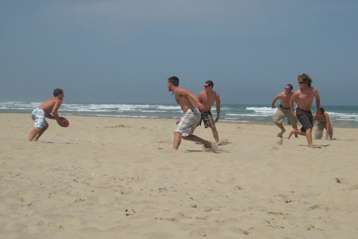Today was our first full day in East London. We started out with an OCB class directly after breakfast. We then got a lift into town from a police officer who let us use their squad van to see what East London is about. We spent some time at a local mall where most people used the internet caf to contact friends and family back home. From there we went to a beautiful white sand beach. The sand was soon being used as a soccer and rugby field, which was really fun. The beach also had several sand dunes, which a group of us climbed up and jumped off. It was a day full of fun under the warm African sun.