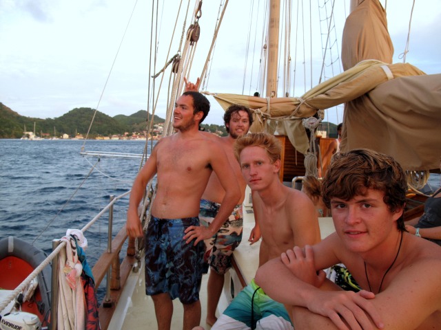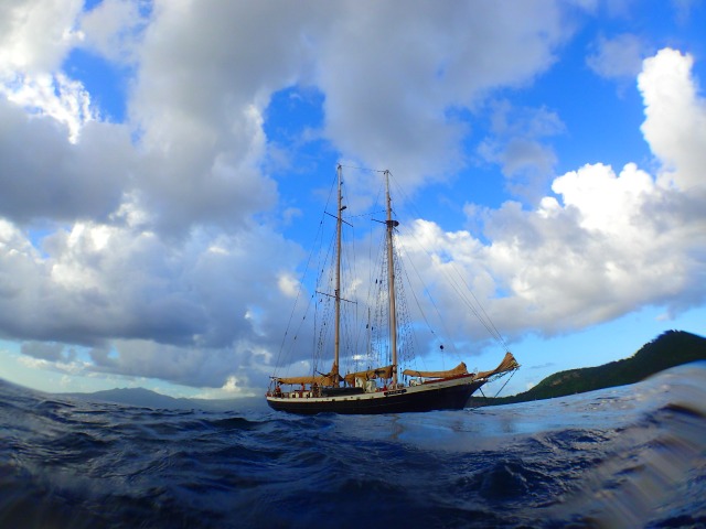 After EFR, we headed to shore to have an OCB class at a Cafe. We practiced our fish identification skills for about an hour and a half and became more confident about our future fish ID exam. After this class, we had shore time. Exploring this French island was very interesting. Many of us sat at cafes and exploited the internet available while others explored the islands’ many attractions. Some went on a short hike to the ruins of a fort on the hillside that was quite old. Some chose to go to the beach on the other side of the island instead. It had amazing rock structures and large waves crashing into them. We were all back on Ocean Star by 5:15 pm to have a delicious dinner. It was raining quite hard at this point, so we were eating down below in the saloon. After dinner, most of us went to sleep, eager for the next day to begin.