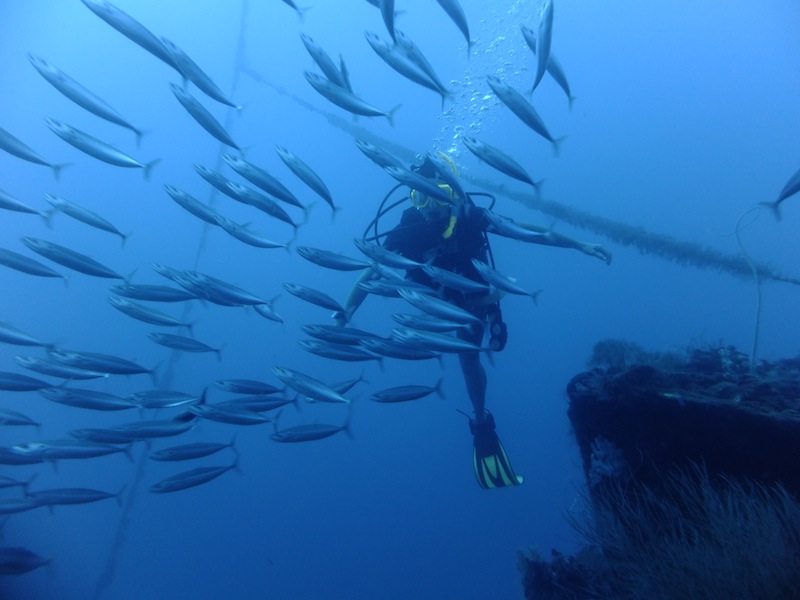 We all knew that it was going to be a good day when we woke up to the smell of bacon. After a delicious breakfast, we split up into two groups. Shayna, Bret, Will, Collin, James, and I went to shore to explore Martinique. We wandered around and chilled in a cafe for a few hours while Dom, Bridget, Aylee, Ben, Gwen, and Jacob went on a wreck dive (the boat sank in the 1902 volcanic eruption). After lunch, the groups switched, and those of us who went to shore in the morning got a chance to dive in the afternoon. For most of us, this was our very first deep dive and our last dive towards our Advanced Scuba certification. When we got back to the boat, we showered and ate dinner, then had a quick Oceanography lecture before our Marine Biology exam. After that, we all chilled out and watched movies in our bunks.