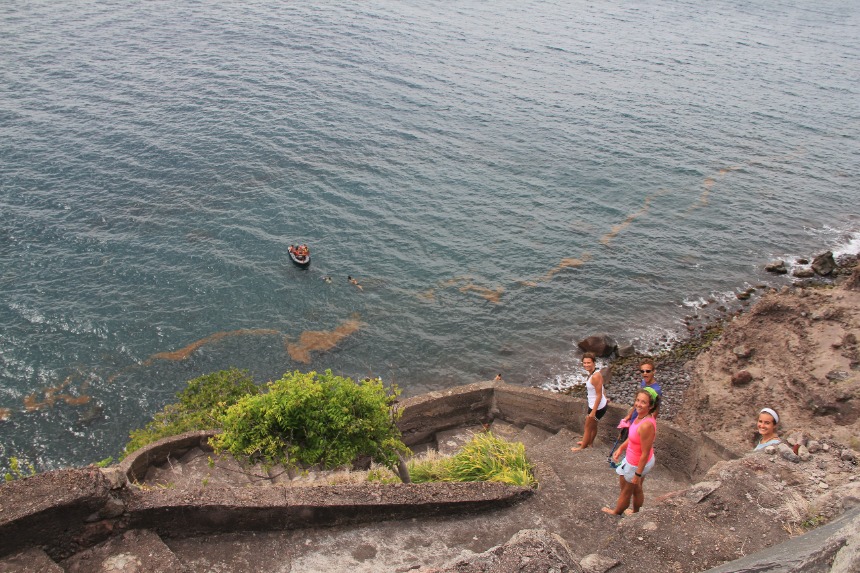 Today started off like any other, except it was our first time waking up on the mystical island of Saba. Throughout the night, gusts of wind had our night watchers on high alert and ready for action. Soon after the night ended, another early morning rose, and banana bread was warm and ready for our big, hungry family. Realizing we had a big day to come, everyone got plenty of food and more. After we went over the game plan, we cleaned up breakfast and got ready for our big day of hiking and exploring! Taking our dinghy, Irving, we got as close as possible to the rocky shore and made so-called navy seal exits. Then, because this island is essentially one huge rock, it was time to climb the “ladder,” a steep staircase that leads to a town ironically named The Bottom. This was by far the hardest part of the day; however, exploring this island was all worth the extensive exercise. When reaching the top, many of us realized that maybe eating so much banana bread wasn’t the best idea, but we carried on. There wasn’t much onshore time since we had to be back in the water waiting for the dingy by 3:30. So most of us had cracked right down to it and began to explore! There were many fun things to do on the island, such as hiking through the beautiful forests and making our own glass beads. After again traversing the ladder and making it back to Ocean Star, we went over our diving knowledge reviews in anticipation of the epic diving in Saba.