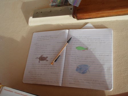 The crew of Ocean Star awoke early and hauled the anchor back to bound for Grand Mal Bay, a picturesque anchorage along Grenada’s west coast. After anchoring, students launched the dinghies and donned scuba gear to dive into an underwater sculpture park with various statues and artistic scenes set in about 20 feet of water. After the dives, everyone returned to the boat, showered in the sea, and feasted on a delicious dinner of Moroccan Chicken before finishing the day off by learning about research methods in Oceanography class.