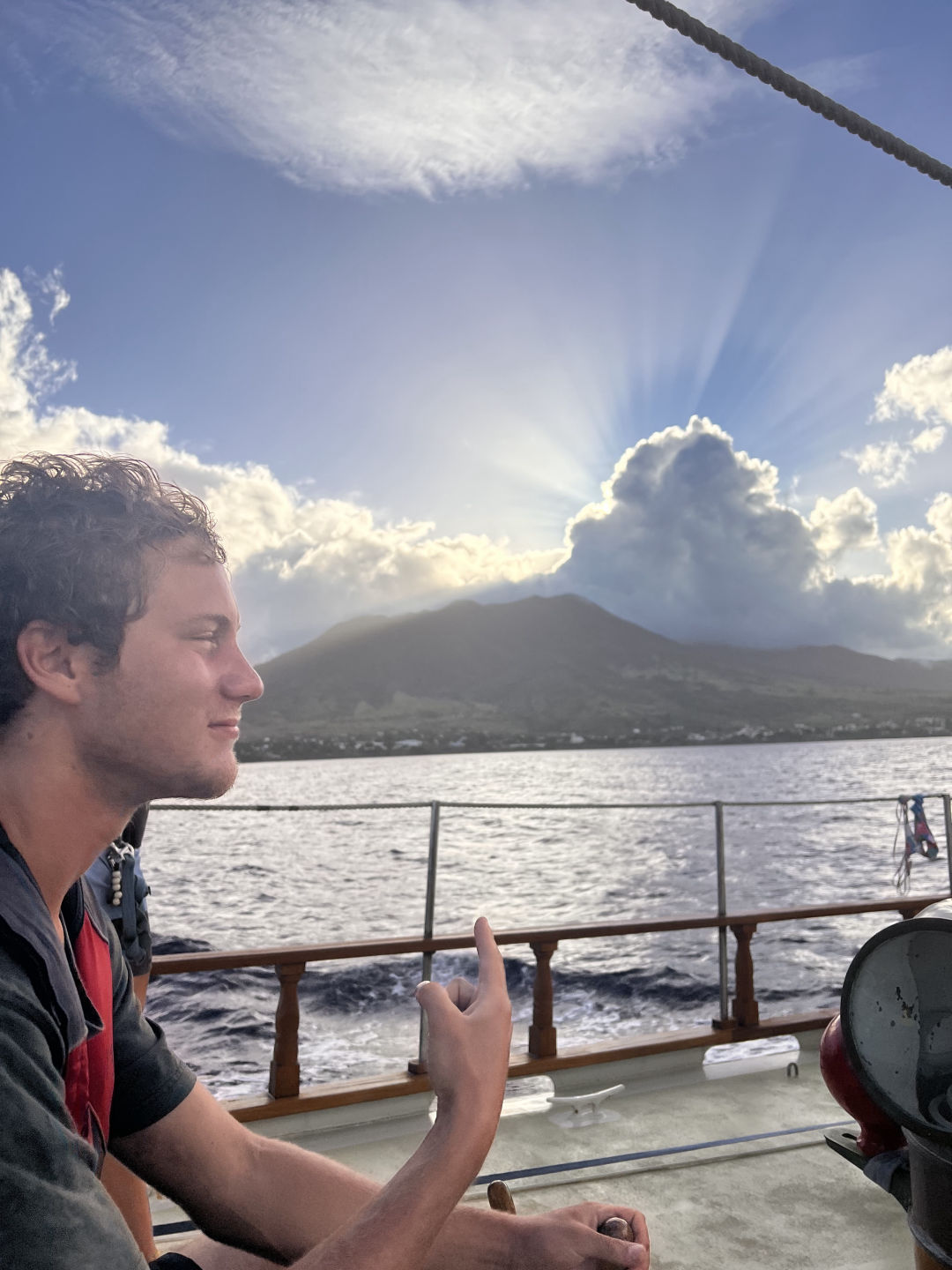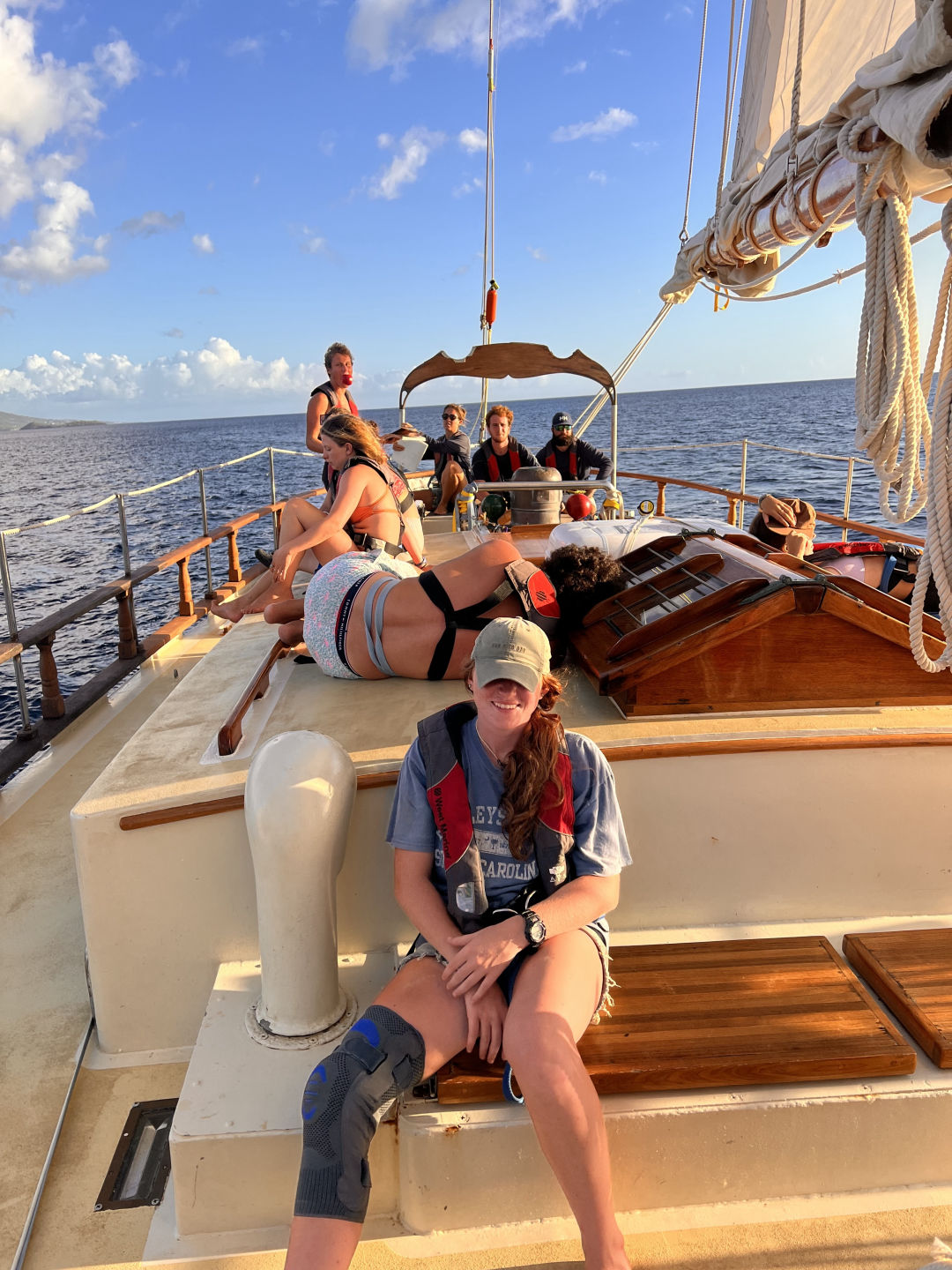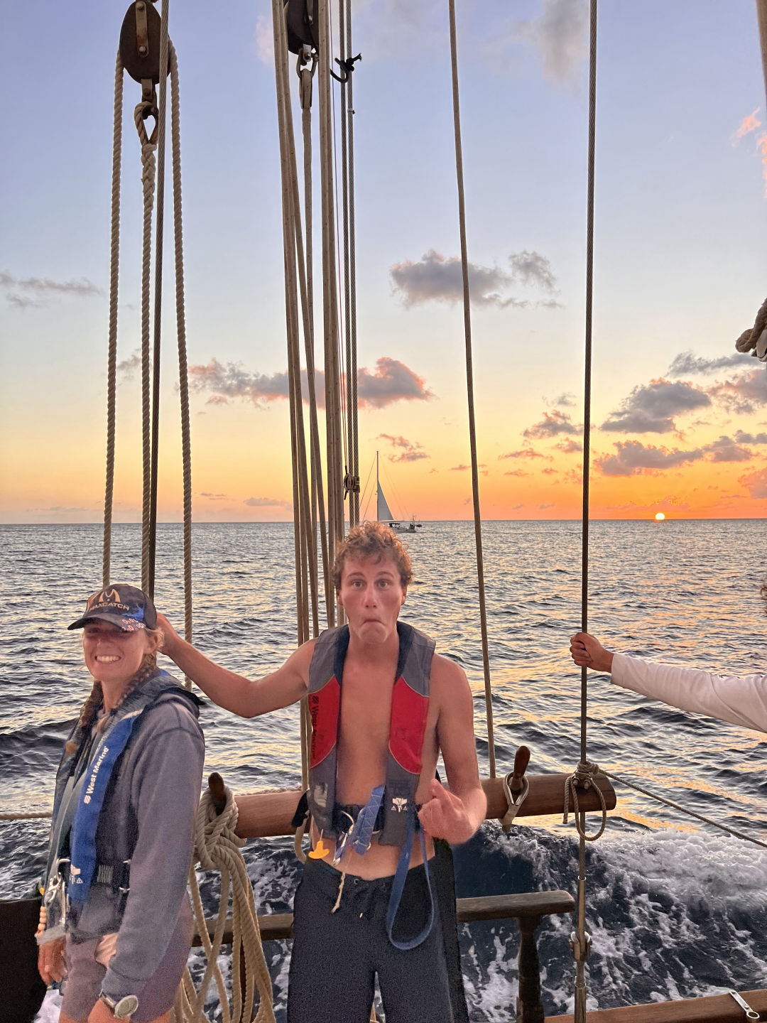 Today we debated the ethicality of whaling in Bequia, looking from the perspectives of local Bequians, the IWC, the Green Peace, and Sea Shepherds. We brought the main boom all the way out abeam from the boat and swung off of a rope tied to the clue ring into the sea. We dove all by ourselves, with no staff under the water with us. I remember when I came here, never having gone diving in my life. When my group came back from our dive, we were greeted by our beloved crew member Kiki. It felt so good to see him. The boat has not have been the same without my friend. We ate some delicious food together, and for the squeeze, I asked, “What things make you feel at home?” My answer is Pine Trees, something I’ve missed being on these islands.