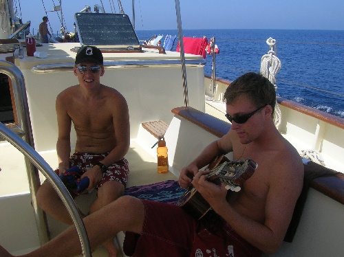 Usually, days at sea are somewhat similar. Today, however, stood out for a number of reasons. It started early this morning when an aircraft carrier was spotted far off the starboard bow. The night before, we were hailed by a French Coalition Warship requesting our particulars, so we assumed this it. As we approached (of course, keeping our distance), fighter jets started taking off from the flight deck of the ship. They all seemed to bank off towards Somalia, but then all of the sudden, coming out of the sunrise, we made out one heading right for Argo. The jet swooped past Argo’s rig so close that it shook the entire boat, and we could make out the color of the pilot’s eyes. The watch team on deck erupted into cheers as we enjoyed some cinnamon rolls baked fresh by Anna. It was nice to know those guys were patrolling the air. As the sun was setting, we got our first glimpse of the African Coast. This marked our turn North to head into the Red Sea. For many, including myself, it was our first look at the dark continent. Needless to say, it was an amazing way to spend a sunset. As the sun dipped beneath Africa, we made our way into the straits and out of the Gulf of Aden. It was a unique passage that all of us will always remember.