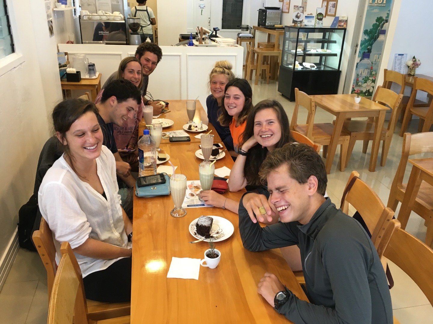Today we woke up to another rainy but beautiful morning in Fiji. For breakfast, we had scrambled eggs and Fijian toast from one of the local pastry shops– so good. Following breakfast, we had Marine Biology class, then got ready for land time, as we got the chance to explore the town of Savusavu today. After getting dropped off at the dock, we met some of the staff at the local fruit market to help with some grocery shopping. We then found a restaurant called the Snowy Dessert Cafe that had amazing smoothies, cake, coffee, and pancakes.