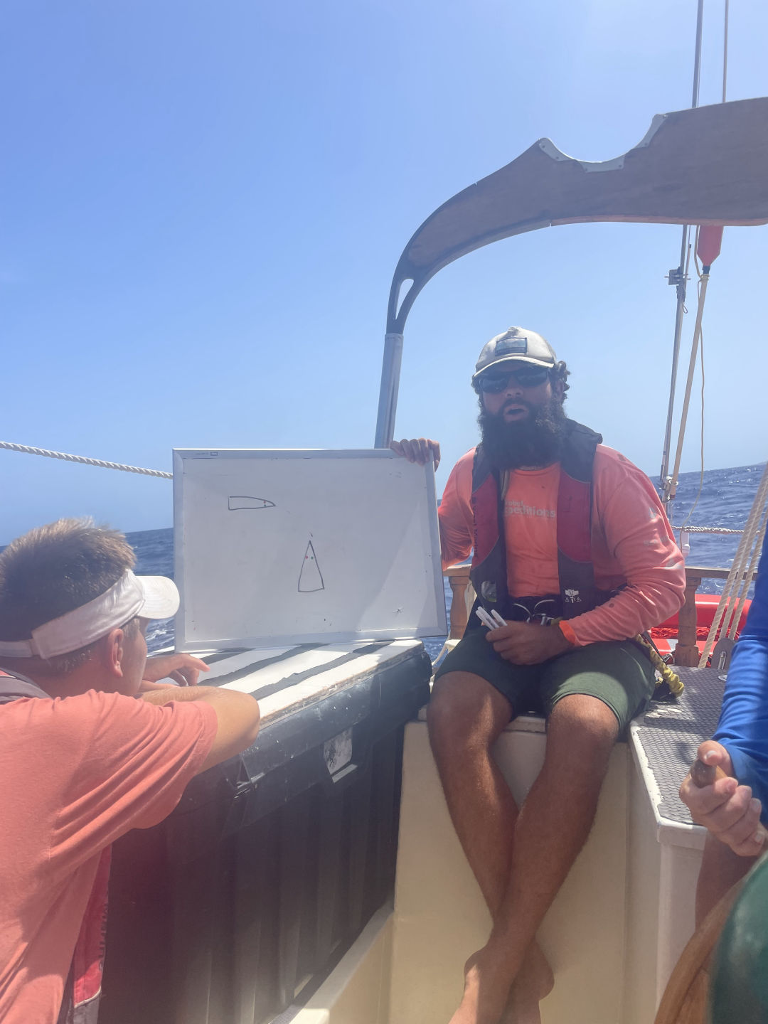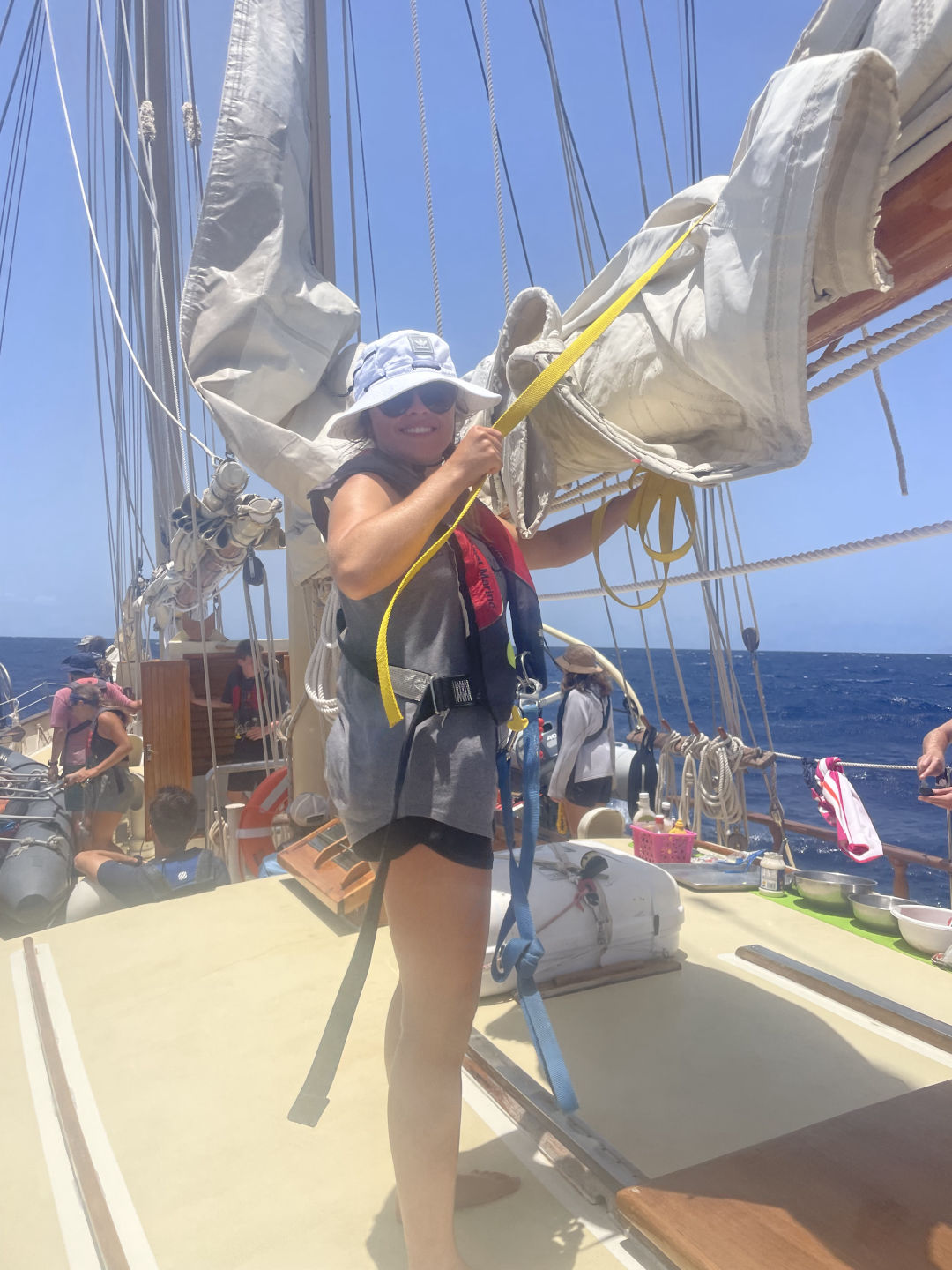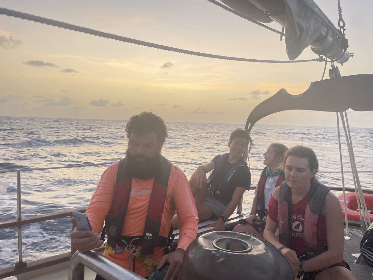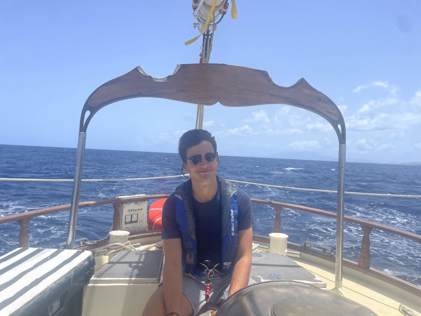 This morning we woke up a little scared (but excited!) in anticipation of our passage since our last passage was a little rough. We all took our Dramamine in hopes it saved everyone from getting seasick. I am very happy to say I have yet to get seasick this whole trip, but I feel for the people who got it bad last passage and hoped they did not have to experience that again. We ate a yummy breakfast and then did passage prep to prepare the boat for our passage. It took a lot less time than the last time because we are all learning what everything is called and how to do everything. We then lifted anchor and got on our way. After raising the sails (shout out to Beau and Sophie for leading), we all chilled on deck for a while listening to music and hanging out as we sailed. We had people at the bow watching carefully for moorings or anything else in the water because we did not want to end up with a fishing net in our prop again. We then ate a wonderful lunch and started watch teams. We also had a class on deck, but I think most of us were fighting sleep under sunglasses. Oops, sorry, Nick – love the class. We’re just so sleepy! It wasn’t on purpose! I was on the first watch team, and as soon as my shift was over, I went and took a nap, so not really sure what happened next… I woke up to a beautiful sunset, and we all ate dinner and enjoyed the view. I am very grateful to say the passage has gone extremely smoothly so far, and we are excited to be in Antigua in the morning. It is getting very sad thinking about leaving in a few days.