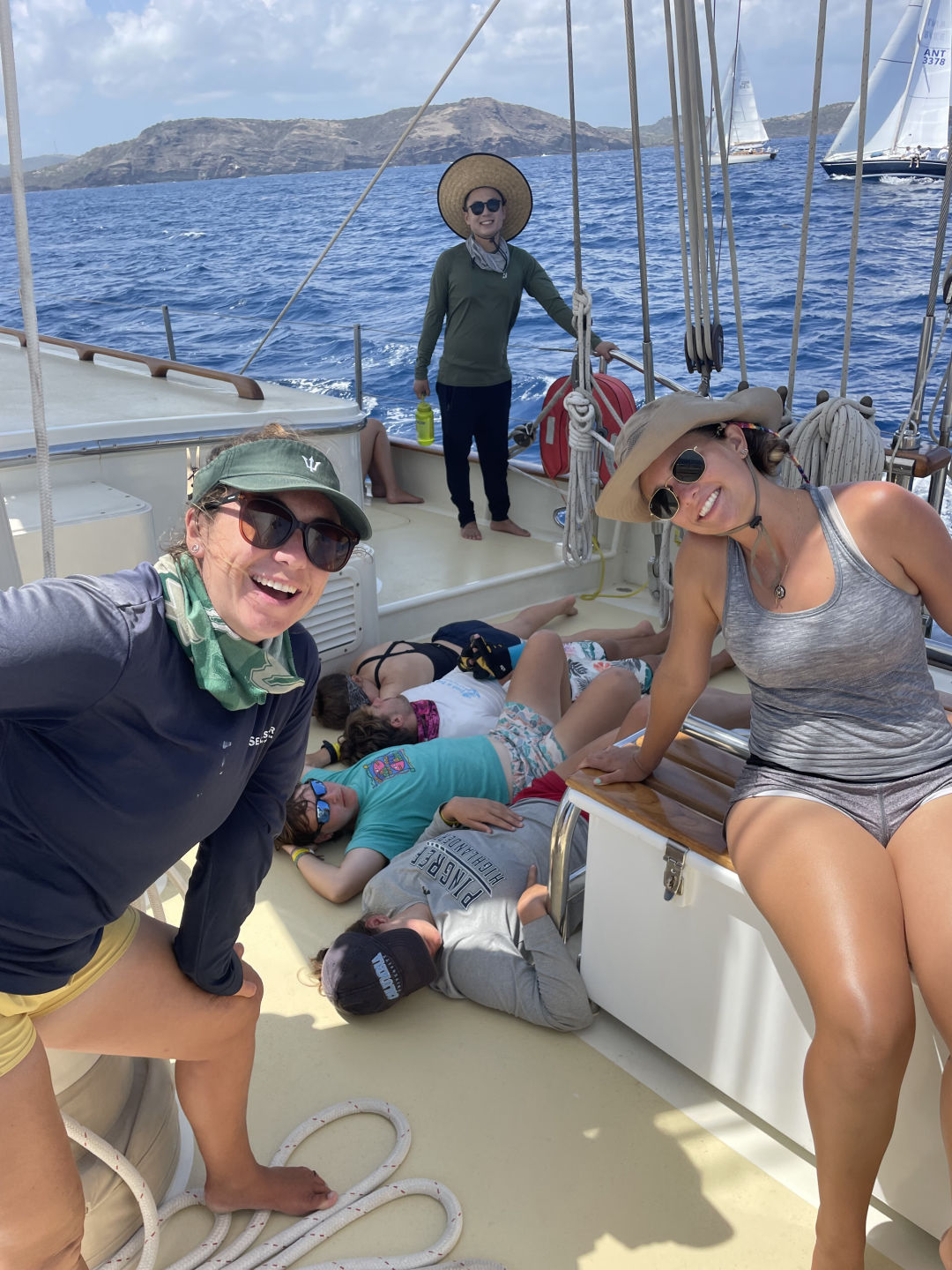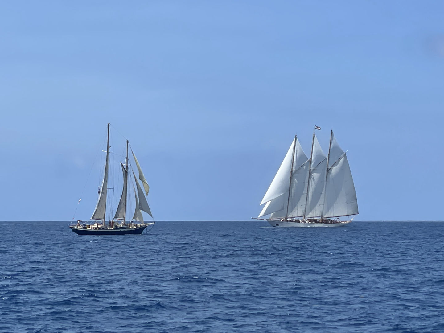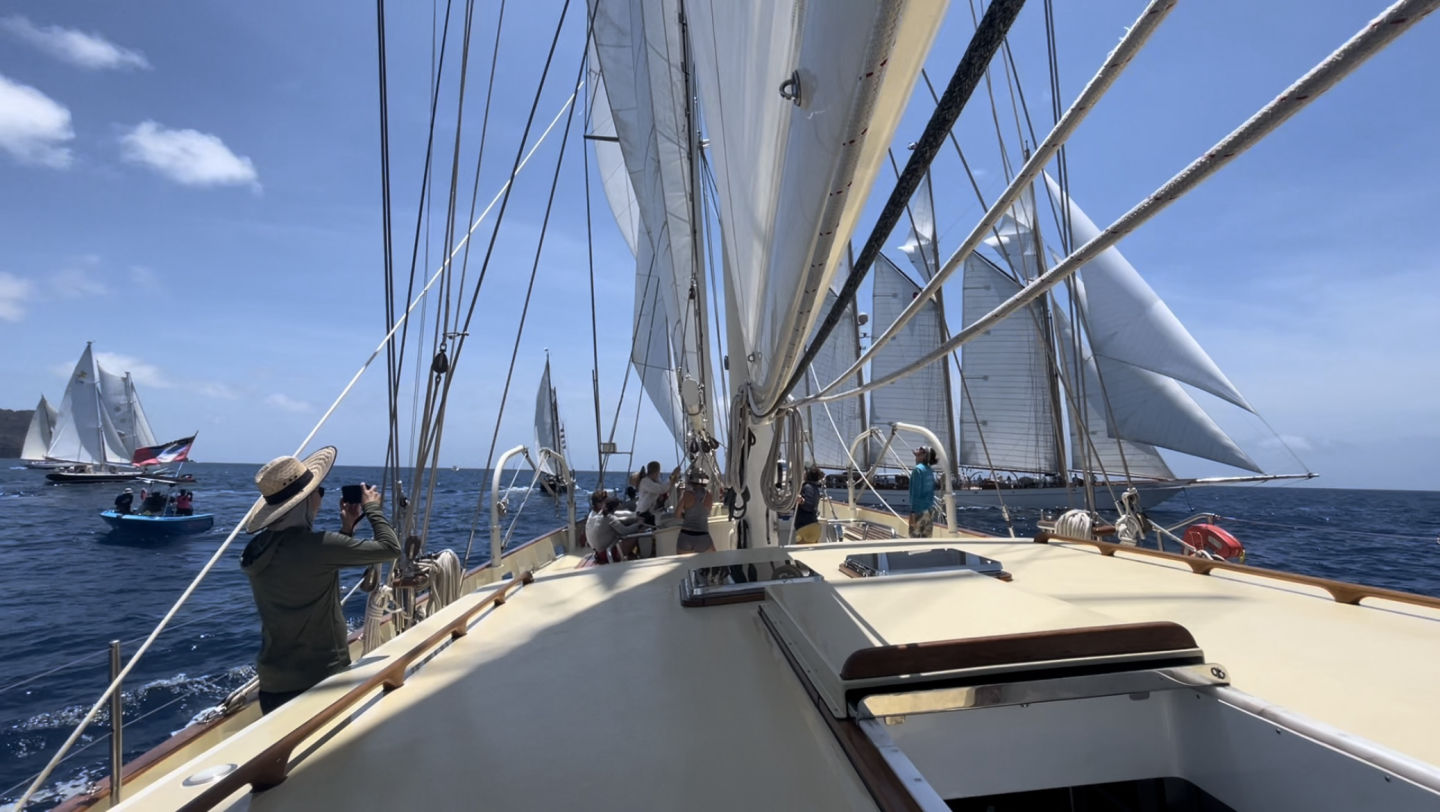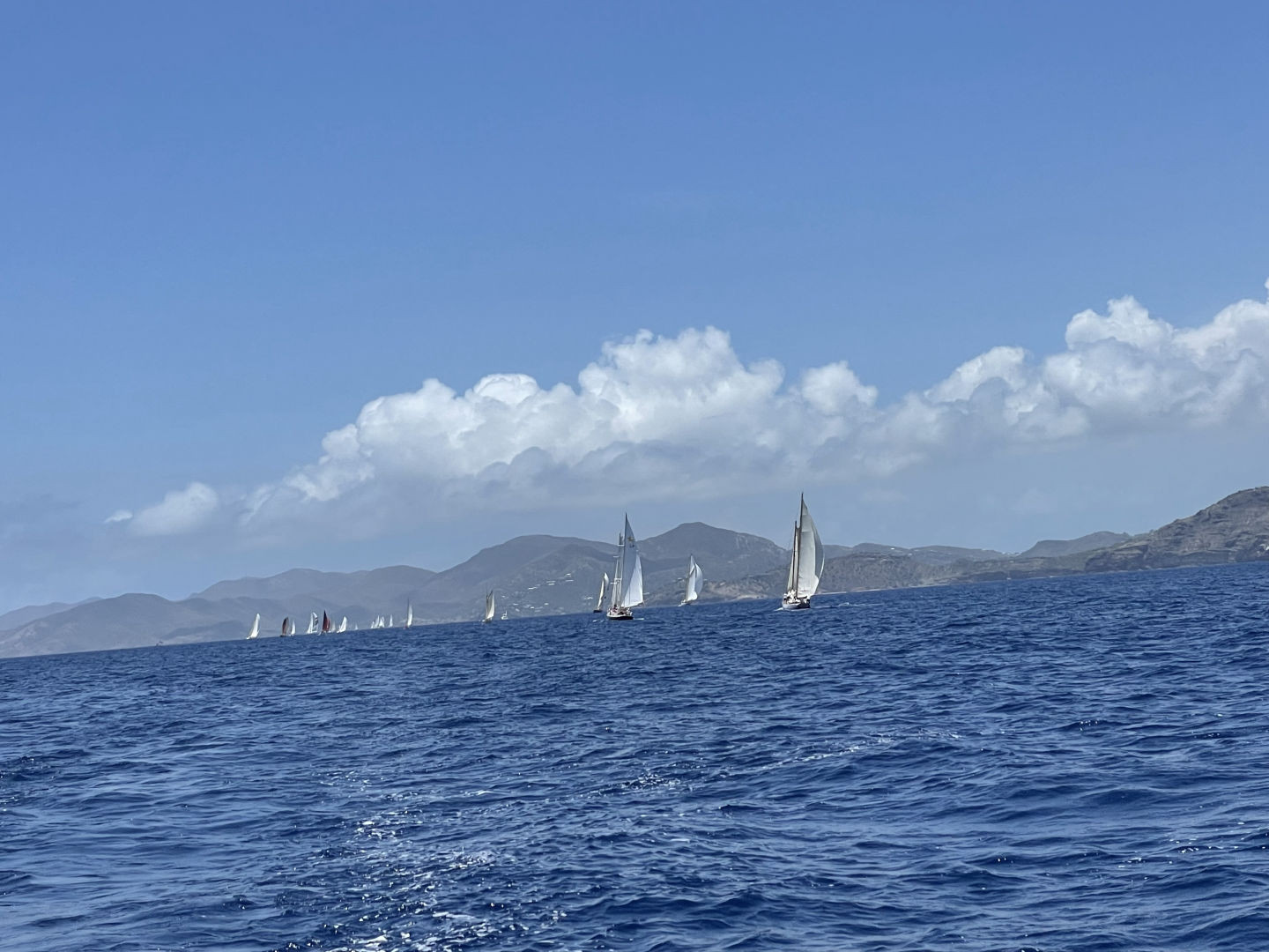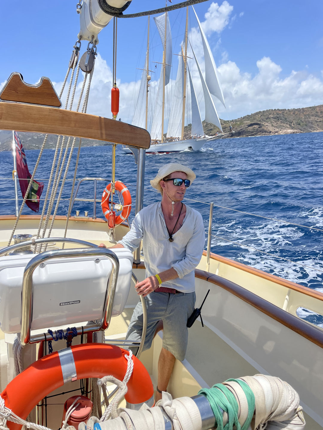Hello, all at home! We have been having a blast at Antigua Classics. Today was the third and final day of racing. Yesterday the race started at 9:30 am, and we have been getting up extra early to prepare the last couple of days. But today, we got to sleep in a little bit because the start time wasn’t until 11:30 am, and we have gotten so efficient at getting the anchors up. Sail covers off, halyards on sails up, and ready to go!