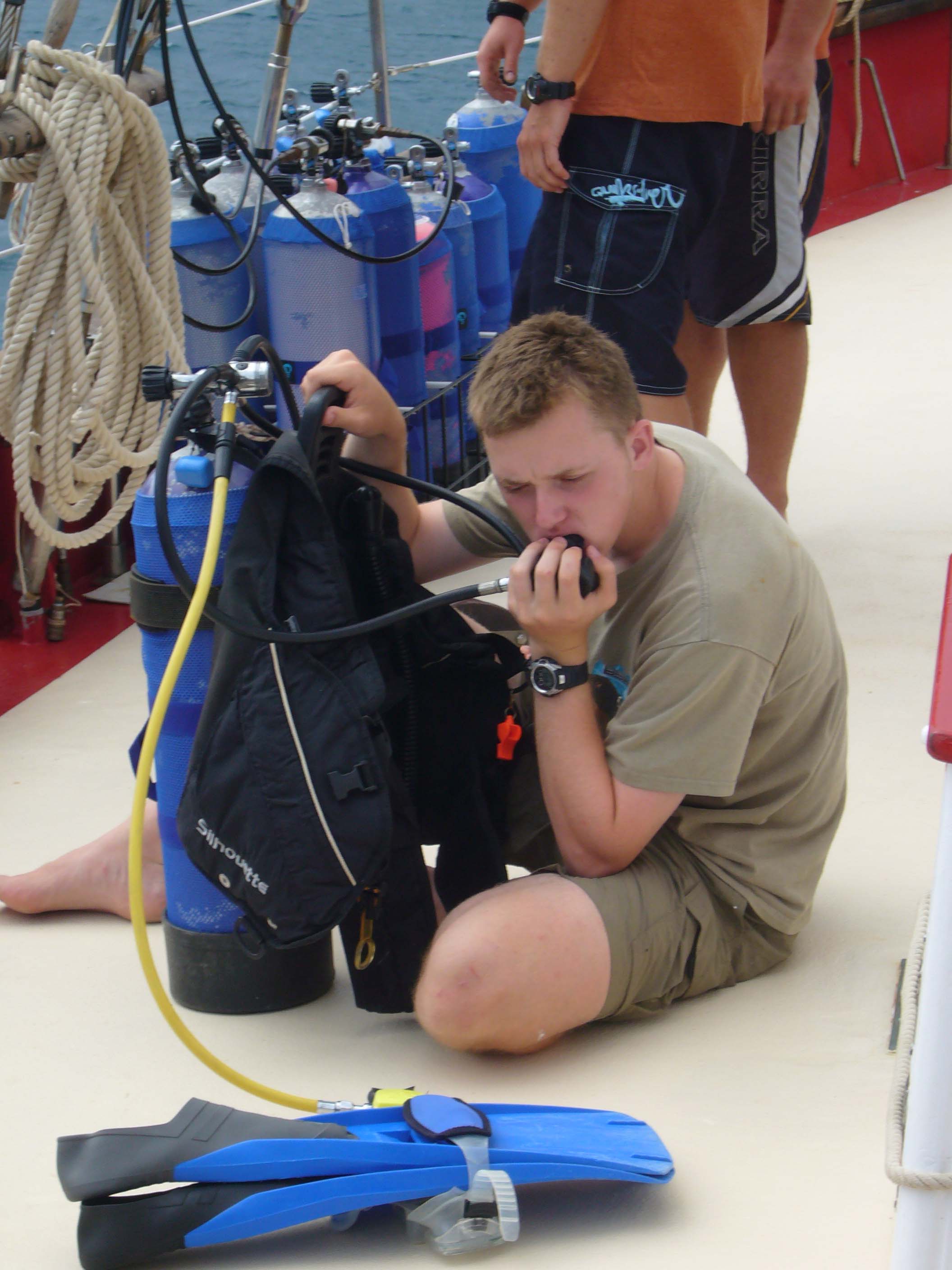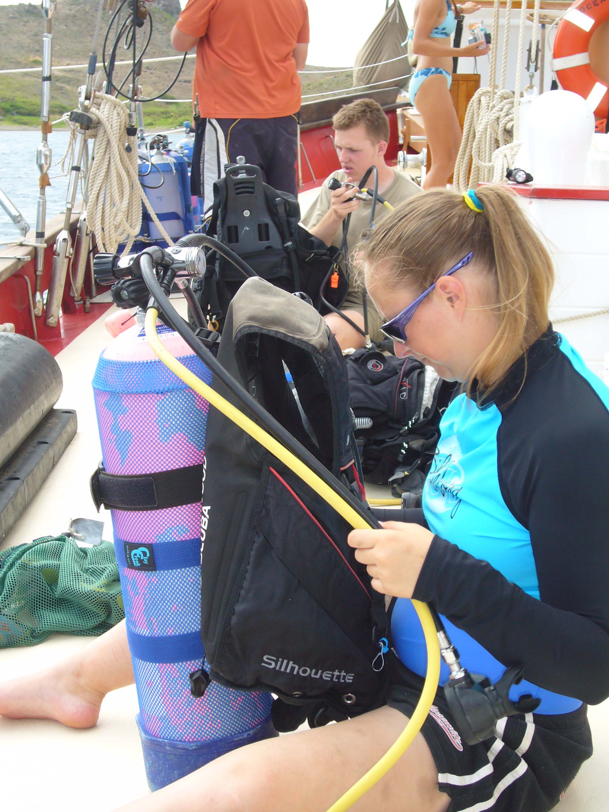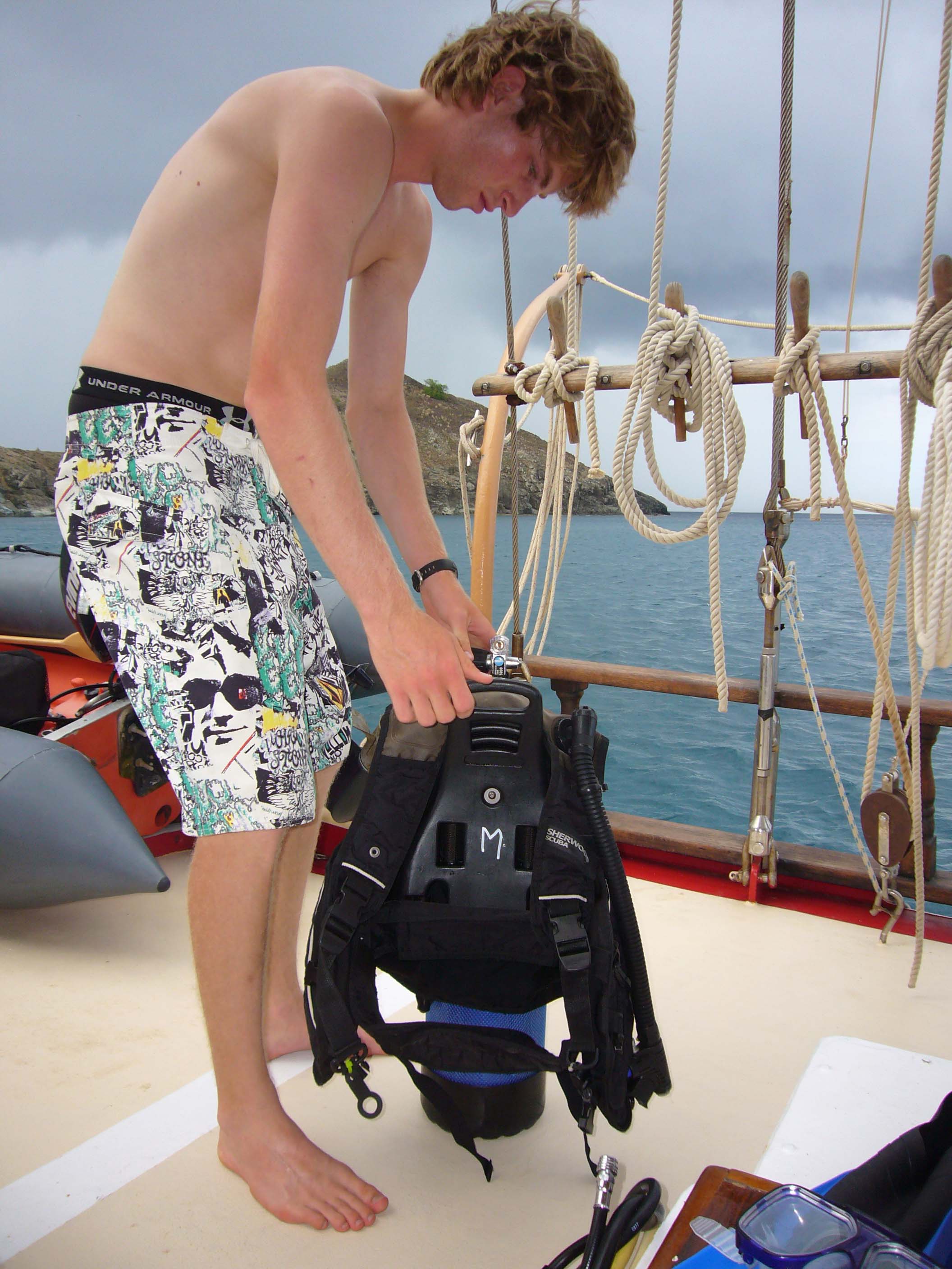 This morning, we woke up and motored to Ile Fourche, where the divers completed our final Open Water dive. Finally certified, we chose to continue diving after lunch, observing such creatures as a large stingray, sea turtle, and barracudas, among many other vibrant fish. After breaking down and cleaning our scuba gear, we had the chance to explore the island. Some people hiked to one of the many peaks, while others relaxed at the beach. Upon our return, we prepped the boat for tomorrow’s passage to Saba. Having finished dinner, we are now settling down for tonight’s MTE class, then off to bed early due to tomorrow’s early morning hike before passage.
