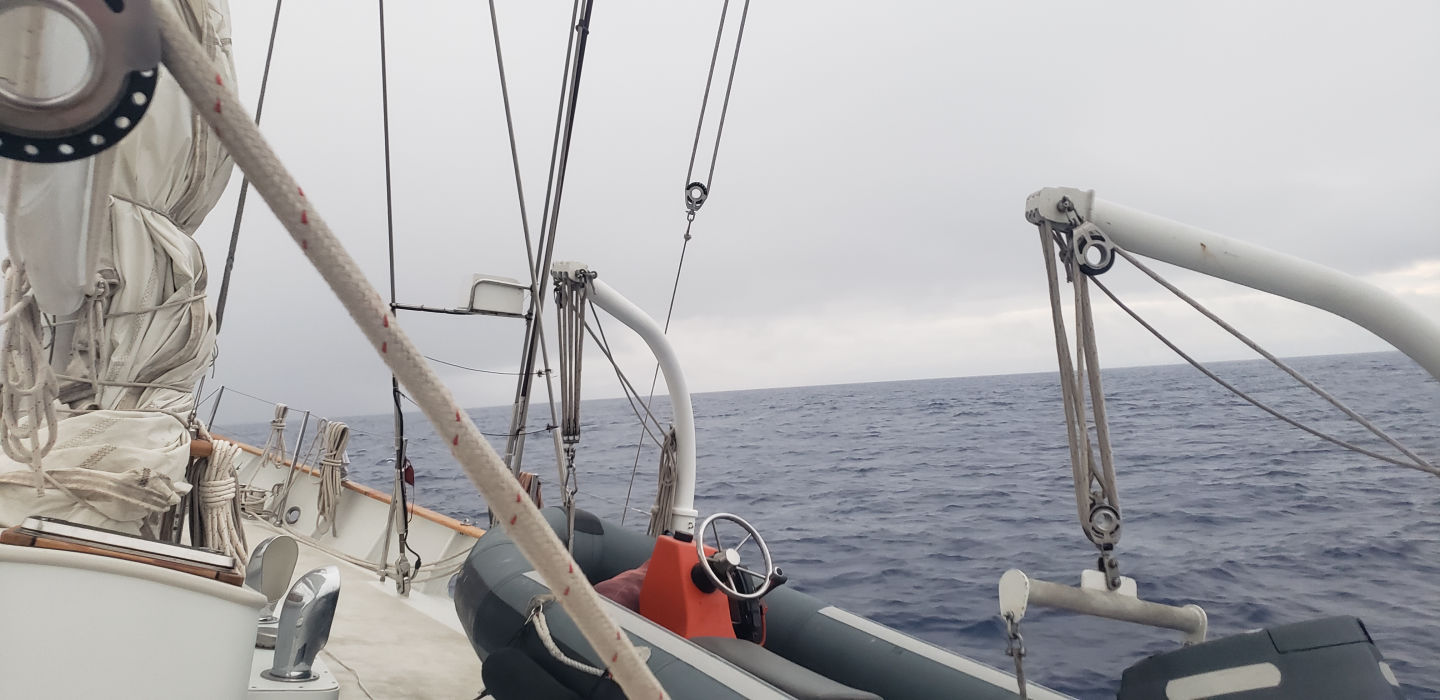 Good evening, everyone! I’m today’s host, Laszlo, and it’s a pleasure to be here today. Hope everyone tuning into these is doing well. We’re about four days away from St.Helena right now with smooth seas, cloudy skies, and a chance of rain, which will not be fun for tonight’s watch teams. Wind speed’s been low as well, so there haven’t been many opportunities to keep brushing up on our line-handling abilities. As for morale, everyone’s been riding the high of getting to swim in the open ocean and a massive tray of snickerdoodles, which gave the 12-4 a.m. watch team a nice boost when we started dozing off. Folks here seem to be getting used to the off-beat schedule, often taking naps in between short studying/homework sessions. I think everyone, including myself, is going to thoroughly appreciate a good 8 hours of uninterrupted sleep after this trip. Vela crew also had their second quiz today, which had us identifying a couple of different species of marine animals, the favorites of which were Rizzo’s dolphin and Wolfi octopus. Other miscellaneous news includes Conor baking his first rolls (almost universally enjoyed) and everyone managing to get through their first load of mid-ocean laundry. Sadly, that’s all for today, folks. There’s not much to see or do out here in the Atlantic besides looking at gorgeous stars and spotting the occasional whale. Vela crew sends their love. Stay safe and happy.