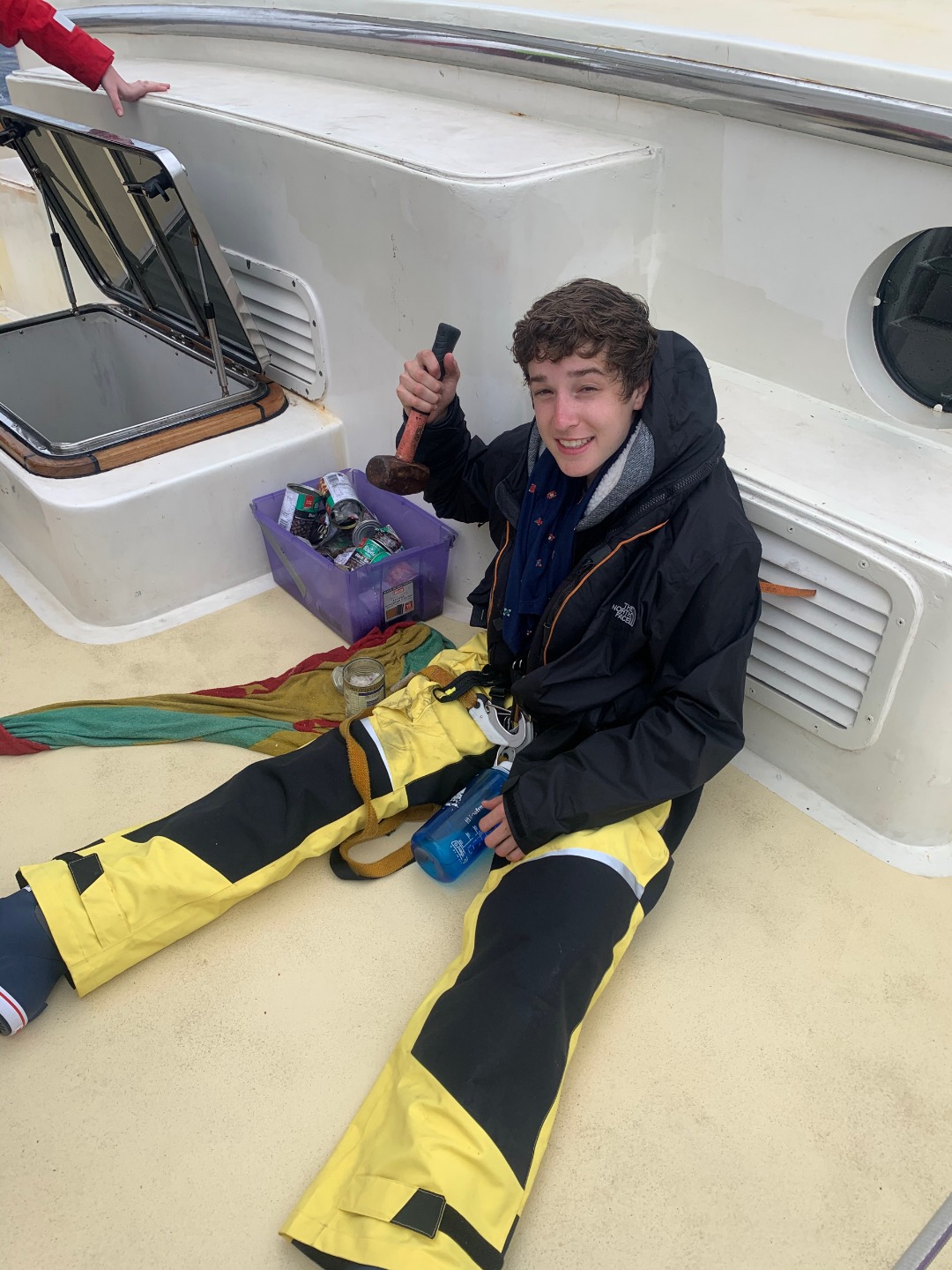 Making way created new challenges, especially for each of us, while we completed jobs after each meal. A once easy task became harder as we had to clean dishes while the boat rocked. Buckets and plates slid across the deck, teaching us the importance of quick reflexes. As seen in one of the photos, Rob was busy smashing the trash so that we could compress it all together and conserve trash during our crossing. Other people were feeling a little too sick to get their work done. Thankfully everyone on Argo watches out for each other, meaning that we can always get the job done.