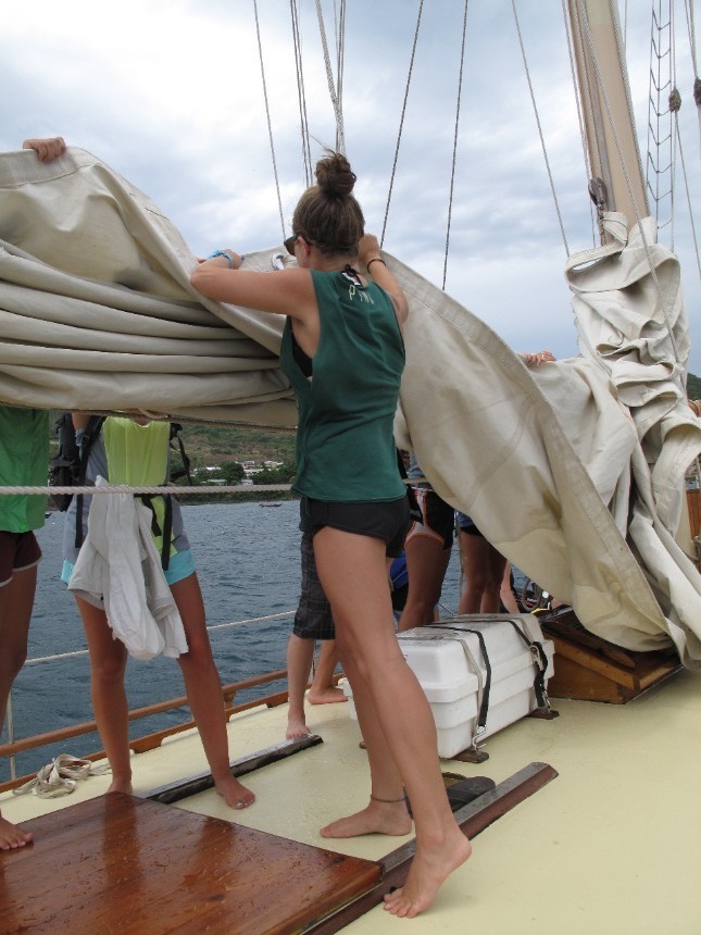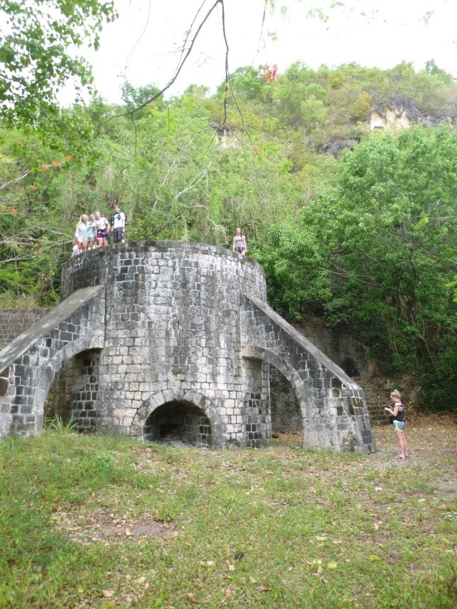Today began early, seeing as we were still on passage through the night. We had three watch teams working in 3 hours on, 6 hours off rotation. Night watch entails a set of varied jobs that must be completed; we did comprehensive boat checks and plotted our coordinates on the hour, we had two people sitting up front on bow watch (constantly getting splashed by large swells of water), and of course, someone on the helm. At about 8:30 in the morning (with land in sight), a squall moved in over the boat, and the last hours of passage proved to be the toughest. When the weather cleared up, we took to land; walking on the solid ground felt a bit strange after acclimatizing to the constant stir of the boat. We trekked up the hill for about half an hour to Brimstone Fort, a fortress erected by the British in the 1690s.