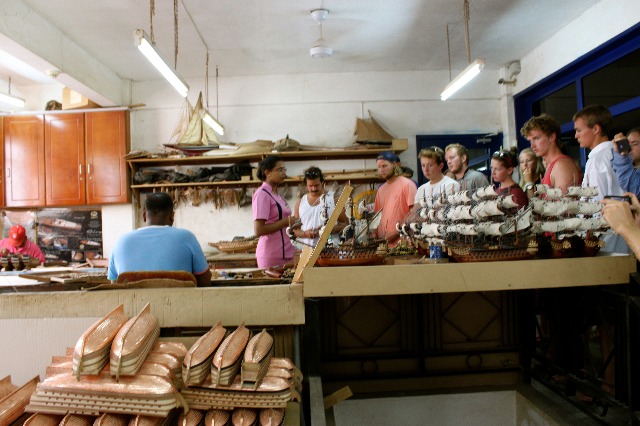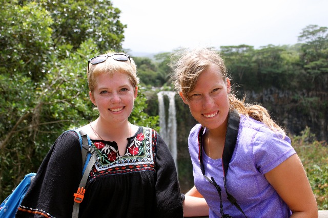 Oh, to be onshore again! Words can’t describe how crazy it was walking on land and seeing traffic on the streets. Last night, we celebrated our successful passage with delicious pizza and sundaes on the waterfront, which was so much fun! Today, we took a tour of Mauritius with two taxis and explored the island. Our taxi drivers took us to a lush part of the island that was dotted with tea and coffee plantations and papyrus trees! We stopped at a beautiful waterfall, which was about as tall as the Eifel Tower, and afterward, we went to an area called the Seven-Colored Eart,h which literally has seven colors of the land. At the Seven Colored Earth, we enjoyed coffee and cupcakes that we have all been craving on our passage. Afterward, we went to a lookout that hovered over a massive gorge. Outside of the gorge, we admired hand-carved secret boxes. Next, we went to a Hindu temple, where we were blessed and marked with red paint on our forehead. The pond at the temple was super entertaining because there were giant freshwater eels trying to eat the pieces of bread that were being thrown at them. After we left the temple, we went to an Indian restaurant for lunch and devoured loads of amazing fresh food as the locals do without utensils. It was challenging, but by the end of it, I think we all mastered the art of eating with our fingers and naan. After lunch, we went to a colonial house, as well as a shop that is devoted to making intricate model ships. The people in the shop gave us a tour behind the scenes and showed us the complex process that goes into making each model ship. They said the body of a 3-foot ship usually takes 20 months to build! The tour was a great way to see Mauritius, and we are all excited to explore it a bit more in the next few days. The peaks and hillsides here are incredible!