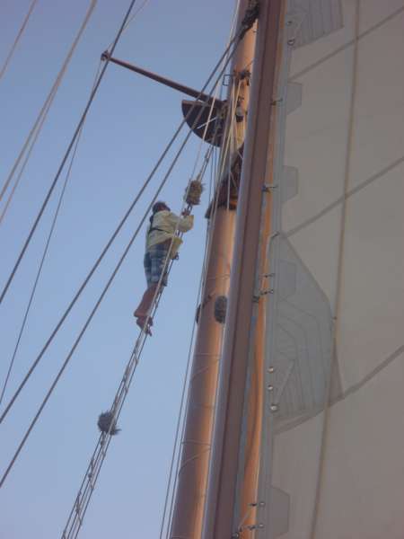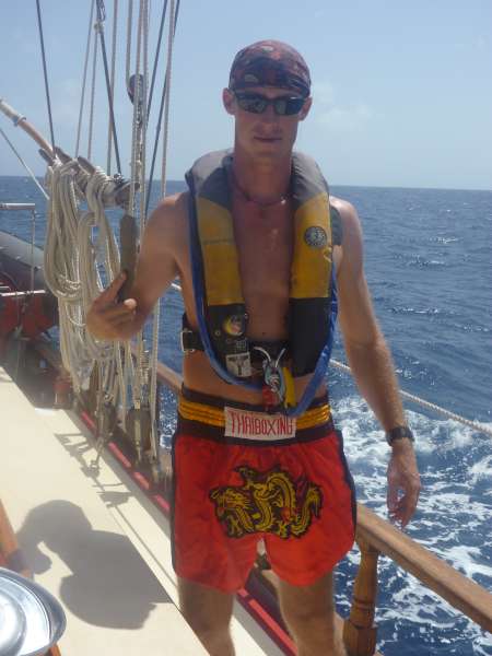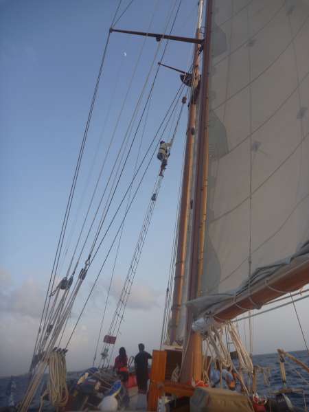 This morning, we prepared Ocean Star for a long passage to Grenada. We left Nevis in the early afternoon and made our way to Redonda (also known as Dragon Island), where Kevin is Supreme Jester of Dragons and put on a full dragon costume. We then had shower time, but the current was really strong, so we had to jump one at a time off the bow in order to not float away. After drying off, we split into watch teams for passage to Grenada. We cycled through watch teams 1, 2, and 3 for the remainder of the day and all through the night. We had watch for 3 hours at a time, and the other six were usually spent sleeping down below. A few of us spent the night over the side of the boat being seasick, and the rest of us were pretty tired the entire time. It was all worth it, though!