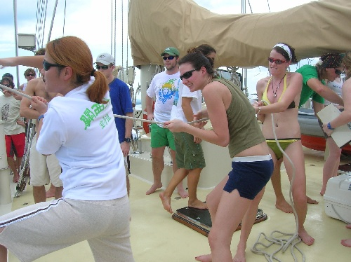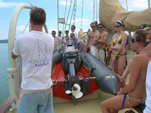 After receiving the shipmates late last night, we woke up this morning to eggs and new faces. After a policy meeting, we had a Thai feast and then left the dock to begin our voyage. We motored 12nm to Ko Yai, where we dropped the hook, had dinner, and did our first anchor watch. Good day, Boomer.