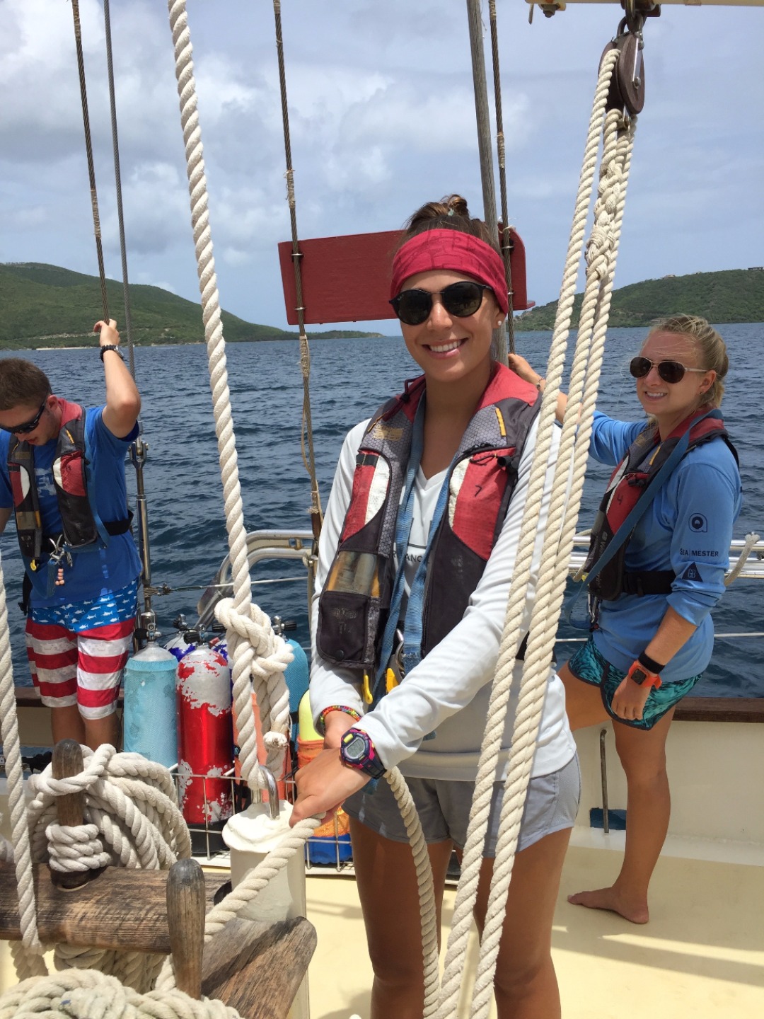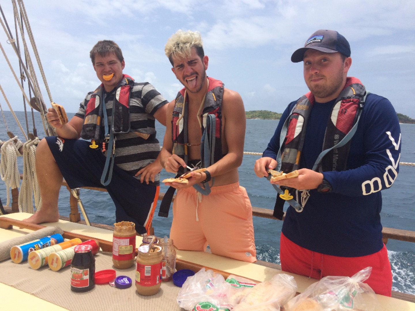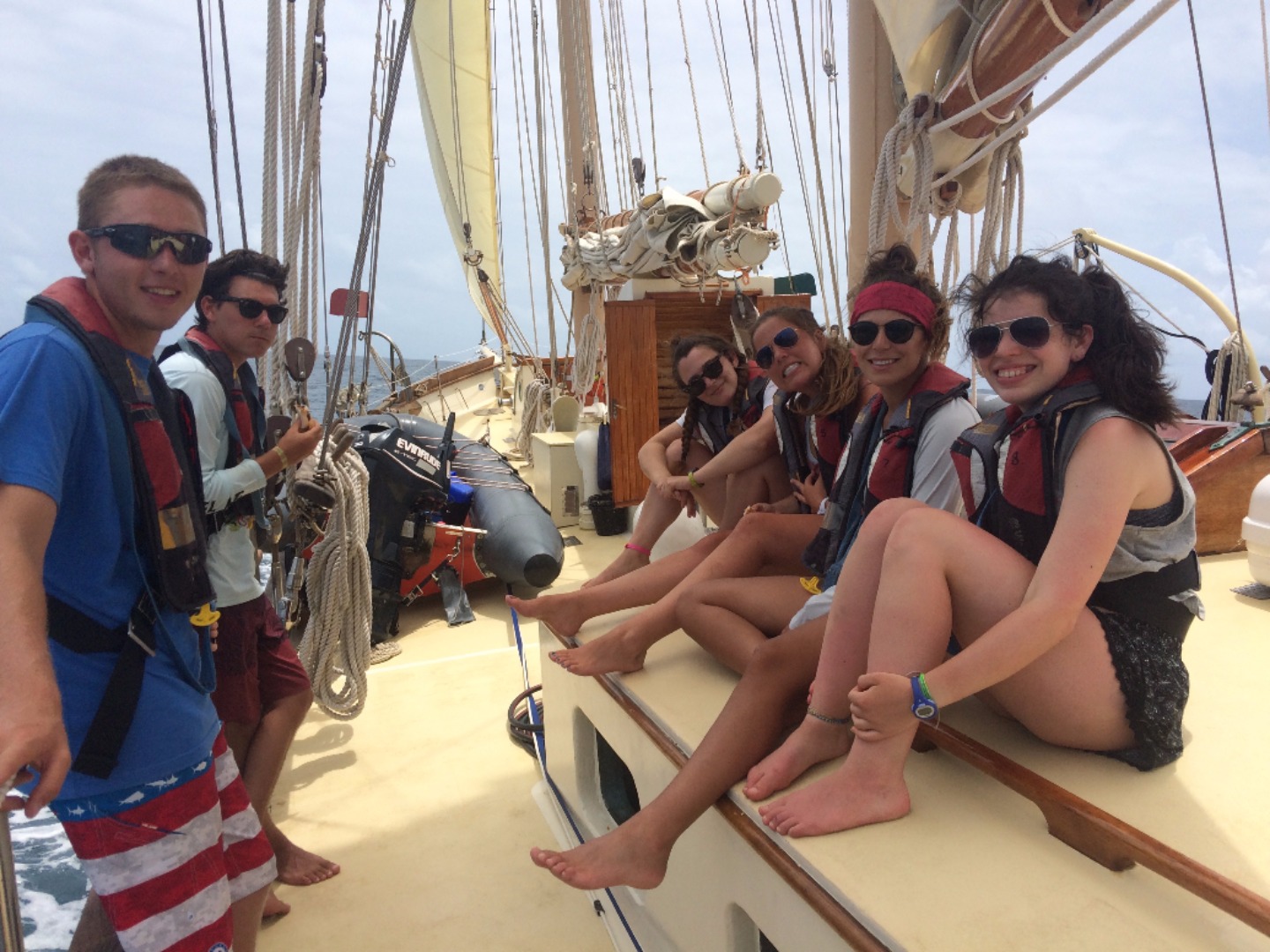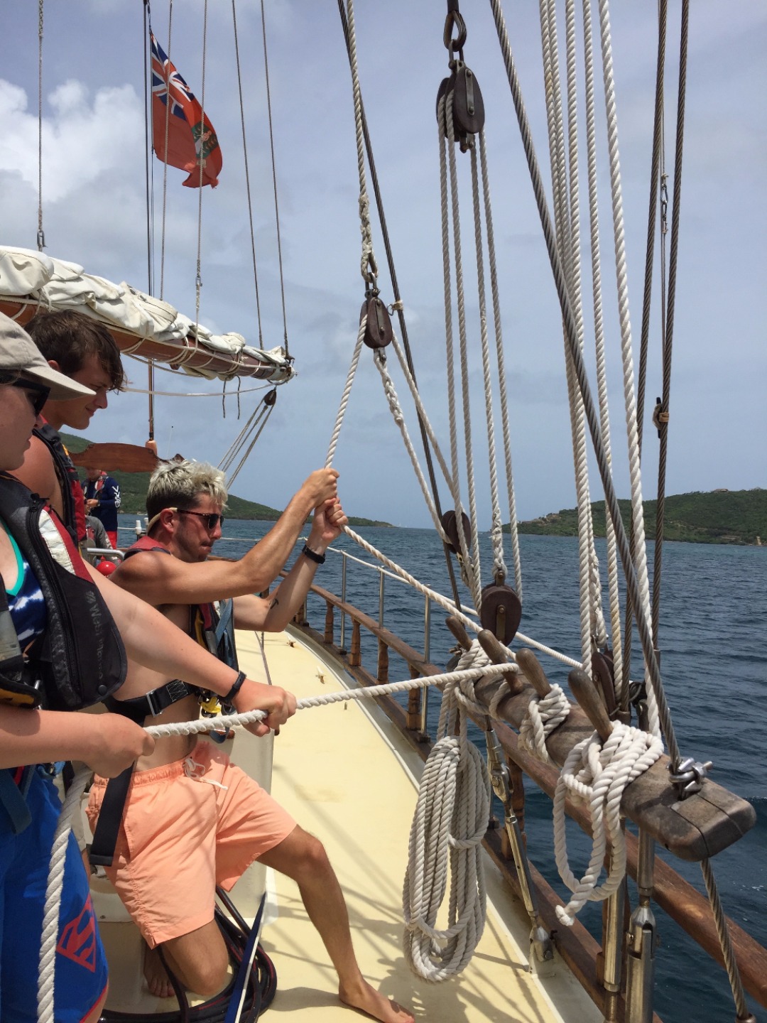 After a quick breakfast and an hour ashore to prepare ourselves, we set off on our first long voyage to Nevis. The sails go up, and we organize into watch teams, the groups responsible for working in shifts to sail the ship for the next 36 hours straight. The hours blend together as the ship overtakes wave after wave after wave. The constant rocking causes a few members of the crew to go green in the face; the others take turns helming the ship, learning to steer all 89 feet of Ocean Star. We struggle to keep our meals from blowing away in the relentless wind, but we still find the time to come together as a crew and enjoy one another’s company.