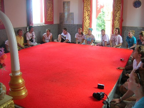 We awoke today anchored off Ko Sichang. After a nice breakfast, the crew went shortly to discuss diving and then headed to shore for a tour of the Buddhist monastery. After returning to Argo and a hearty lunch of golf charlies and chili, we had our first marine bio class. This was followed by a tour of the local marine center and some free shore time. We capped off the day with a good dinner and a nautical science course. Good start!