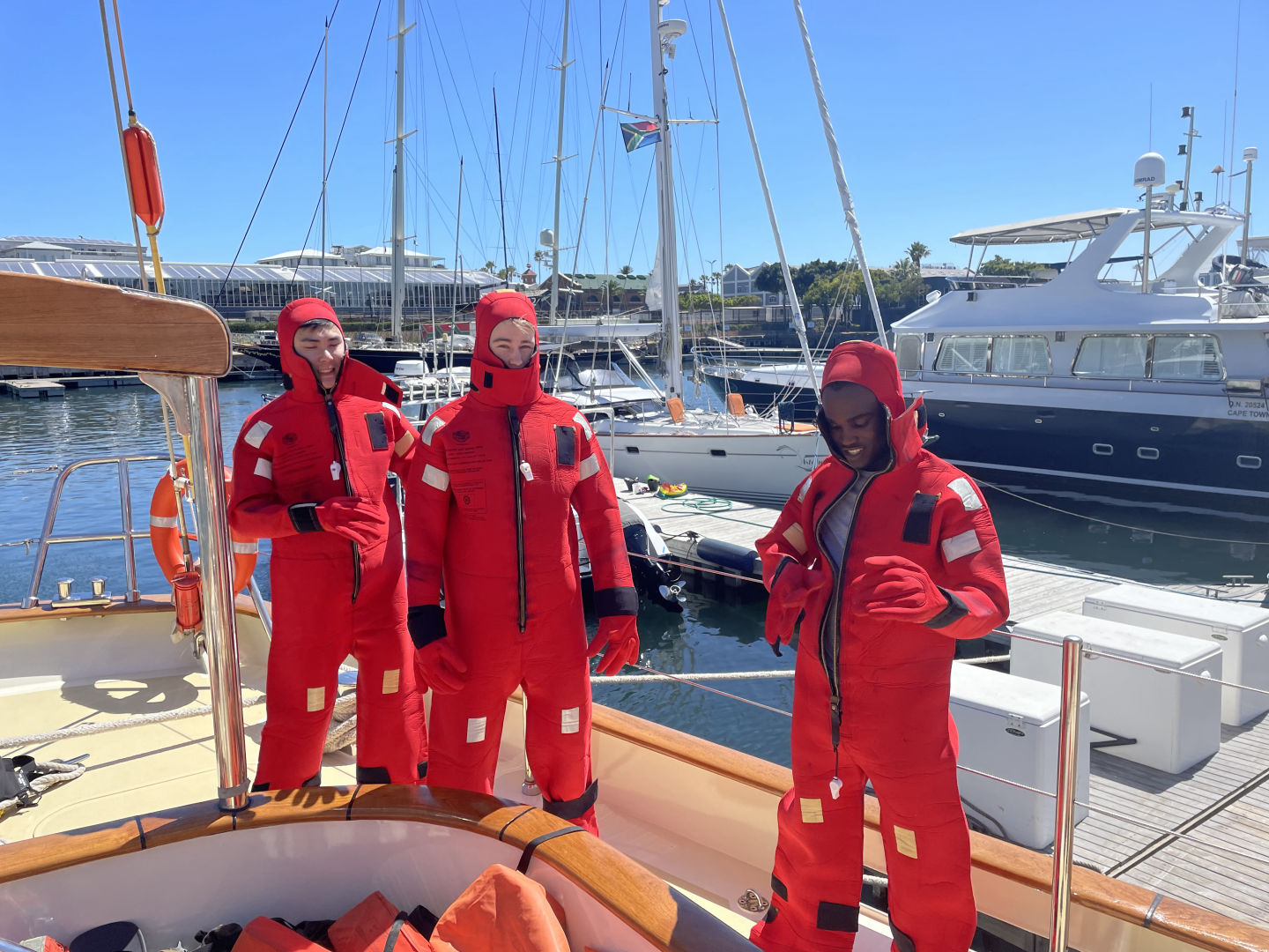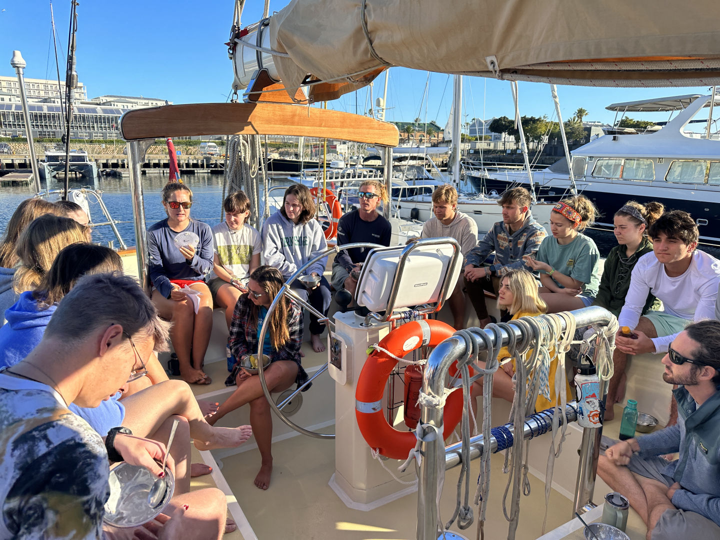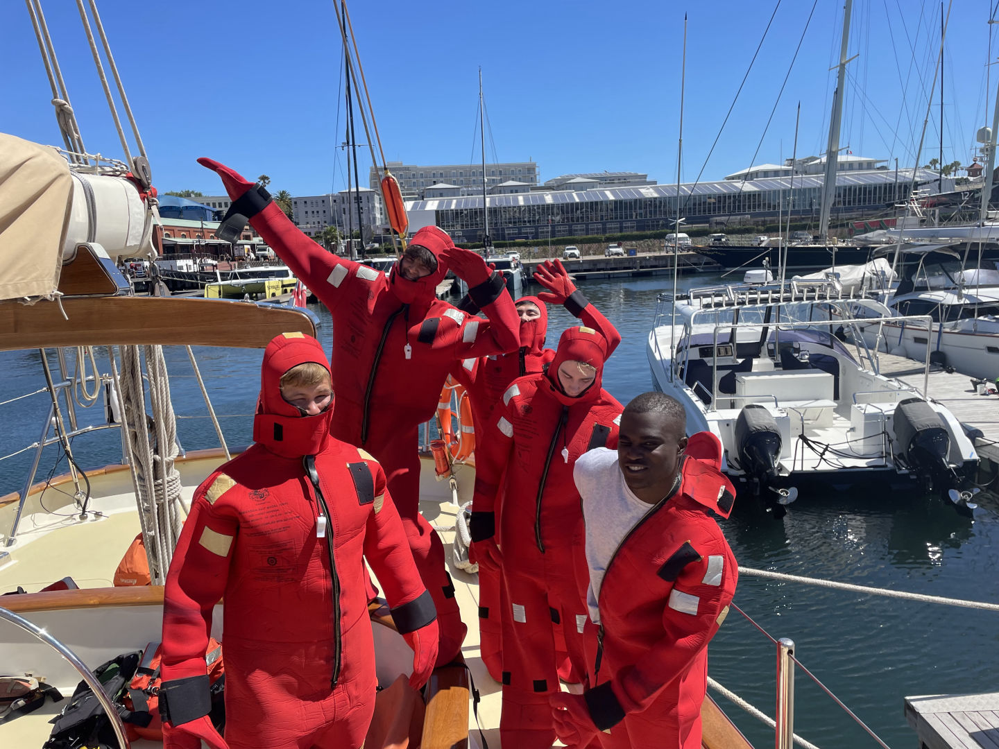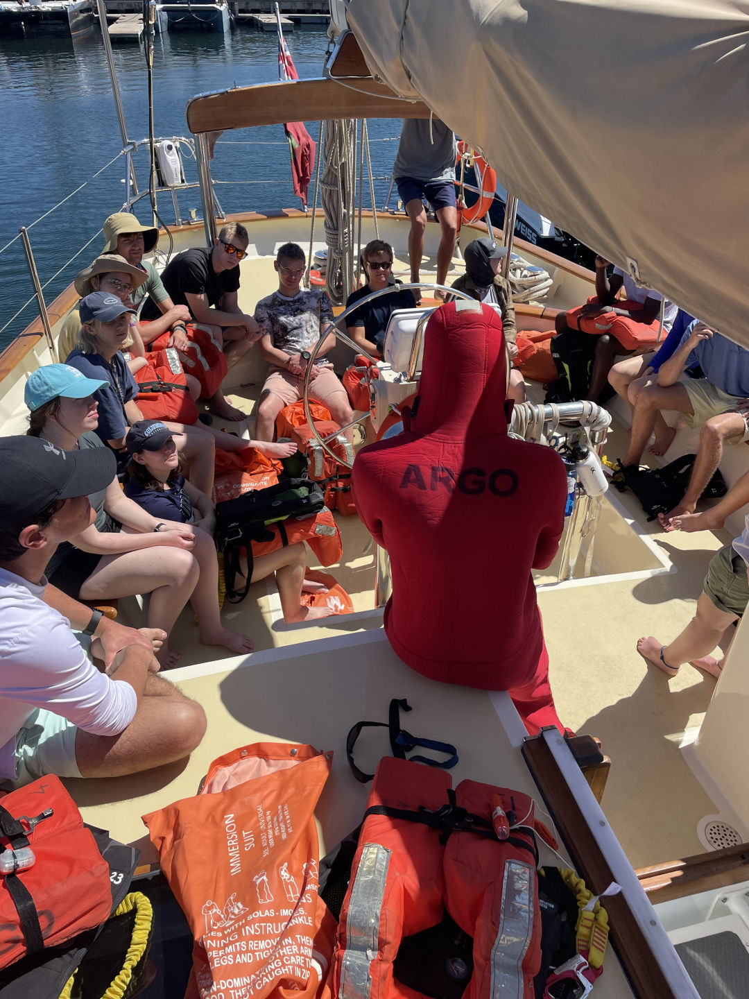 Today is our first full day on Argo, and we have already had a very productive, informative, AND fun day! At 7 am, everyone was so excited to wake up to the sight of table mountain in the backdrop across the marina. Groups of sea lions swam around the boat; some of them poked their head out while the more intrepid ones twirled in the water to show how great of a swimmer they were. Occasionally, we heard some powerful groans from them. After a quick breakfast, we spent time going over the program policy, followed by a detailed walkthrough of the safety procedures. This included going over how to properly fit and wear the life jackets, Personal Flotation Devices (PFD), and gumby suit, which is a waterproof immersion suit used in the unlikely case of abandon ship.