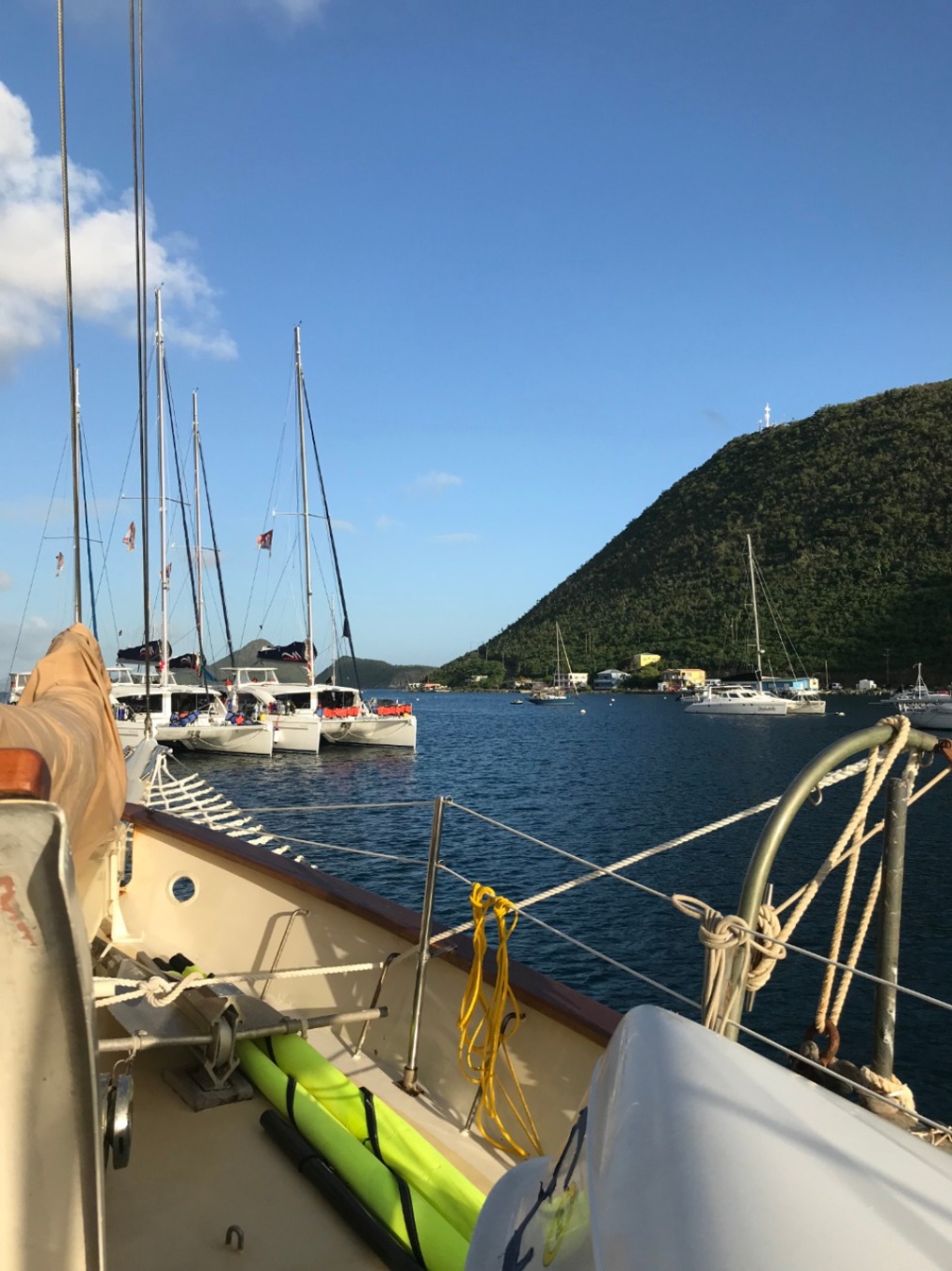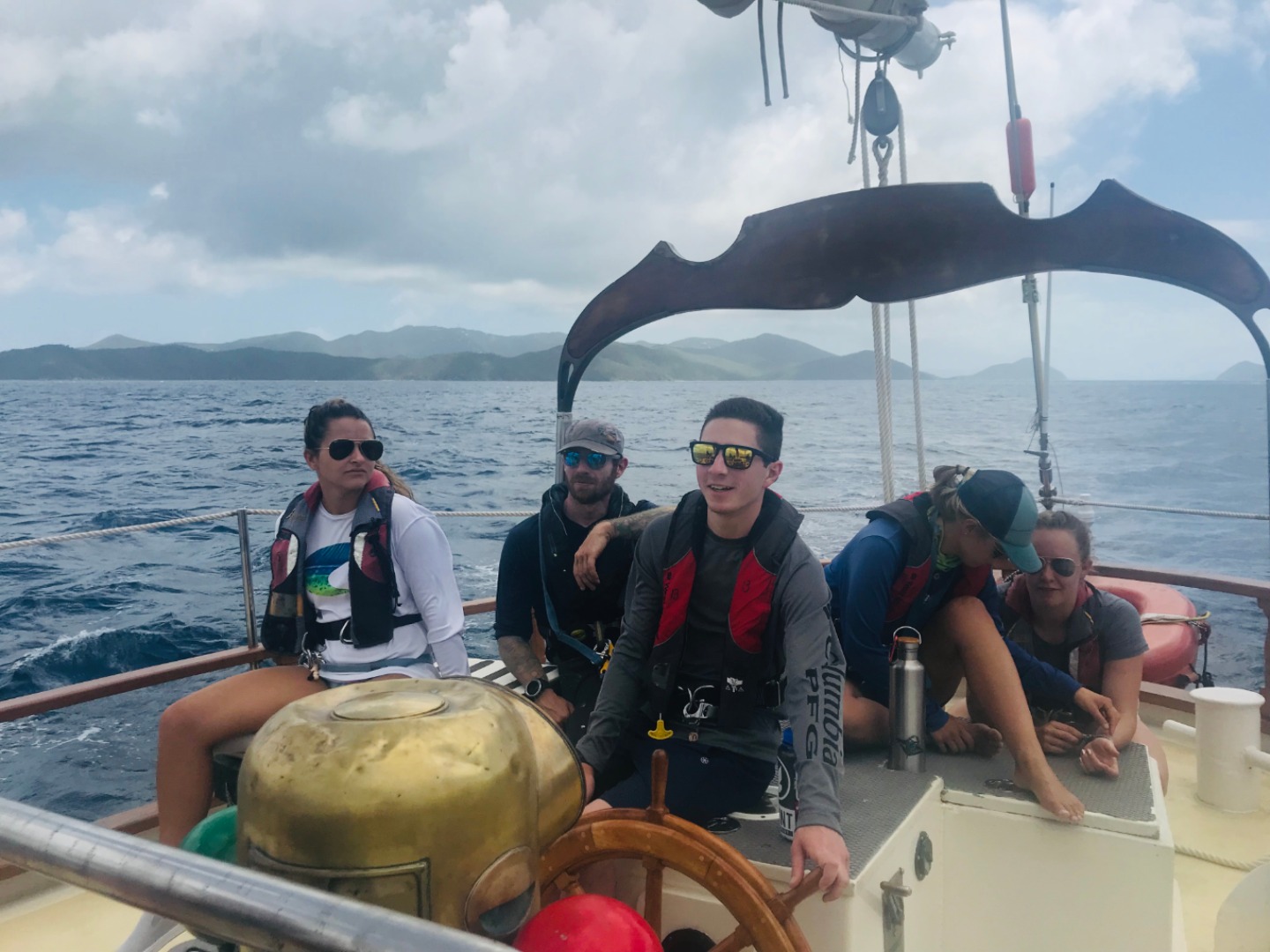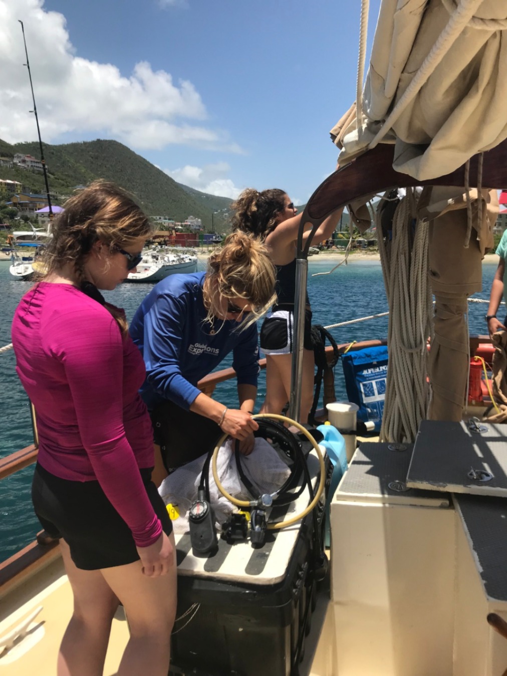 Today was the first full day for us students aboard the Ocean Star. It began with a refreshing dip in the harbor in Tortola to complete the swim test. With any tiredness left in our eyes, the warm morning sunshine and a cool breeze would set the tone for a rather wonderful day. After that, everyone began to find their rhythm with a well-balanced breakfast and friendly chit-chat on the dock. Each of us settled into our jobs as gophers, salties, deckies, you name it, and helped out wherever we might have been needed. We all quickly learned how much we were to learn in the coming days with some crash courses in basic ship maintenance, anchor watch duties, and some videos before the very first dives for some of us. All of the instructors were so great in helping and reassuring us in our efforts to learn the ropes, quite literally. We eagerly assisted wherever we could as we cast off for our very first time to journey to our next destination, Savannah Bay. The winds were high, and so were everyone’s spirits.