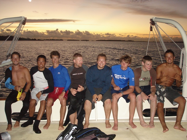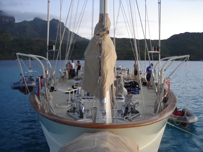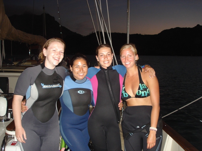 I woke up once again to the realization that we were anchored in 12 feet of crystal-clear water inside one of the most amazing lagoons I’ve ever seen. Something about Bora Bora feels like home. As the crew and I wiped the sleep out of our eyes and headed to breakfast, we started to feel excited about the day ahead of us. In Oceanography class, we learned about the chemical makeup of water and the ocean. As Chris says, “If there is magic on this planet, it is contained in water.” We thought about this as we learned to drive the dinghy and sat in Marine Biology class. Next on our schedule was a night dive at 7:00. We hoped to see some of this magic in the form of bioluminescent plankton, sharks, octopus, and other marine organisms. I was lucky enough to see a variety of shrimp, including banded coral shrimp, mantis shrimp, and a moray eel. Good night.