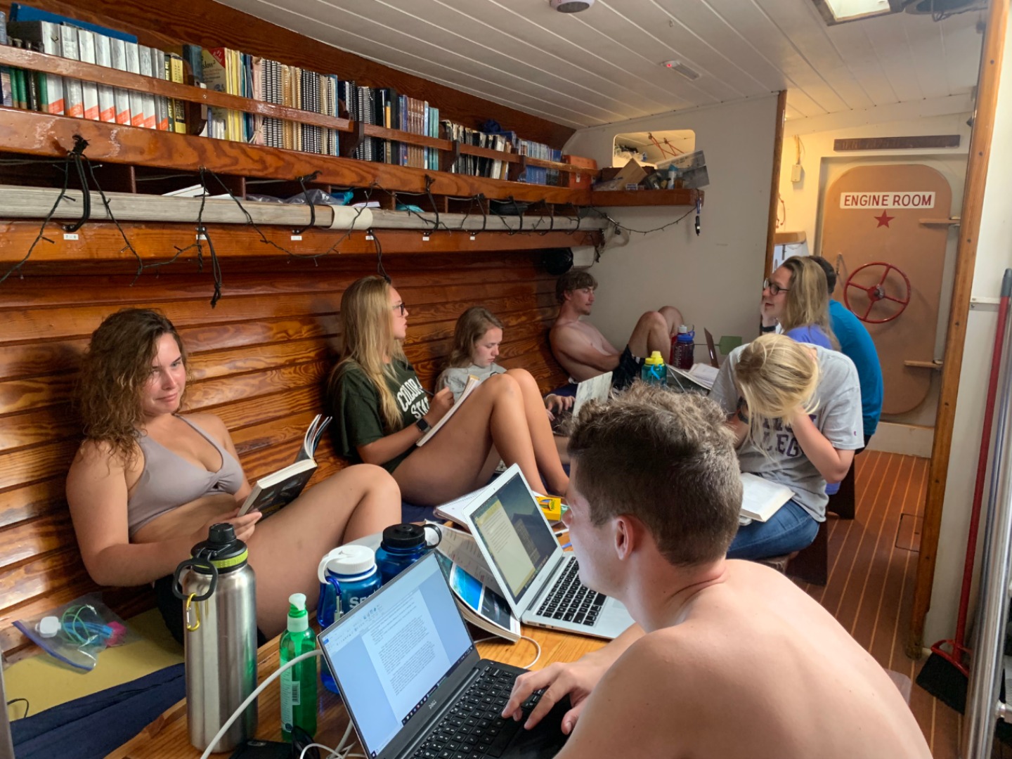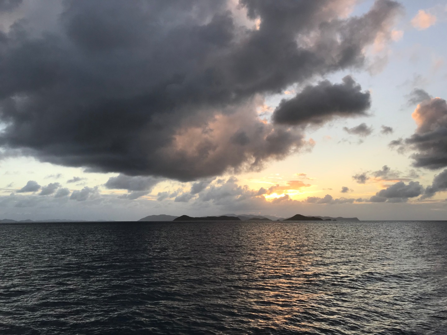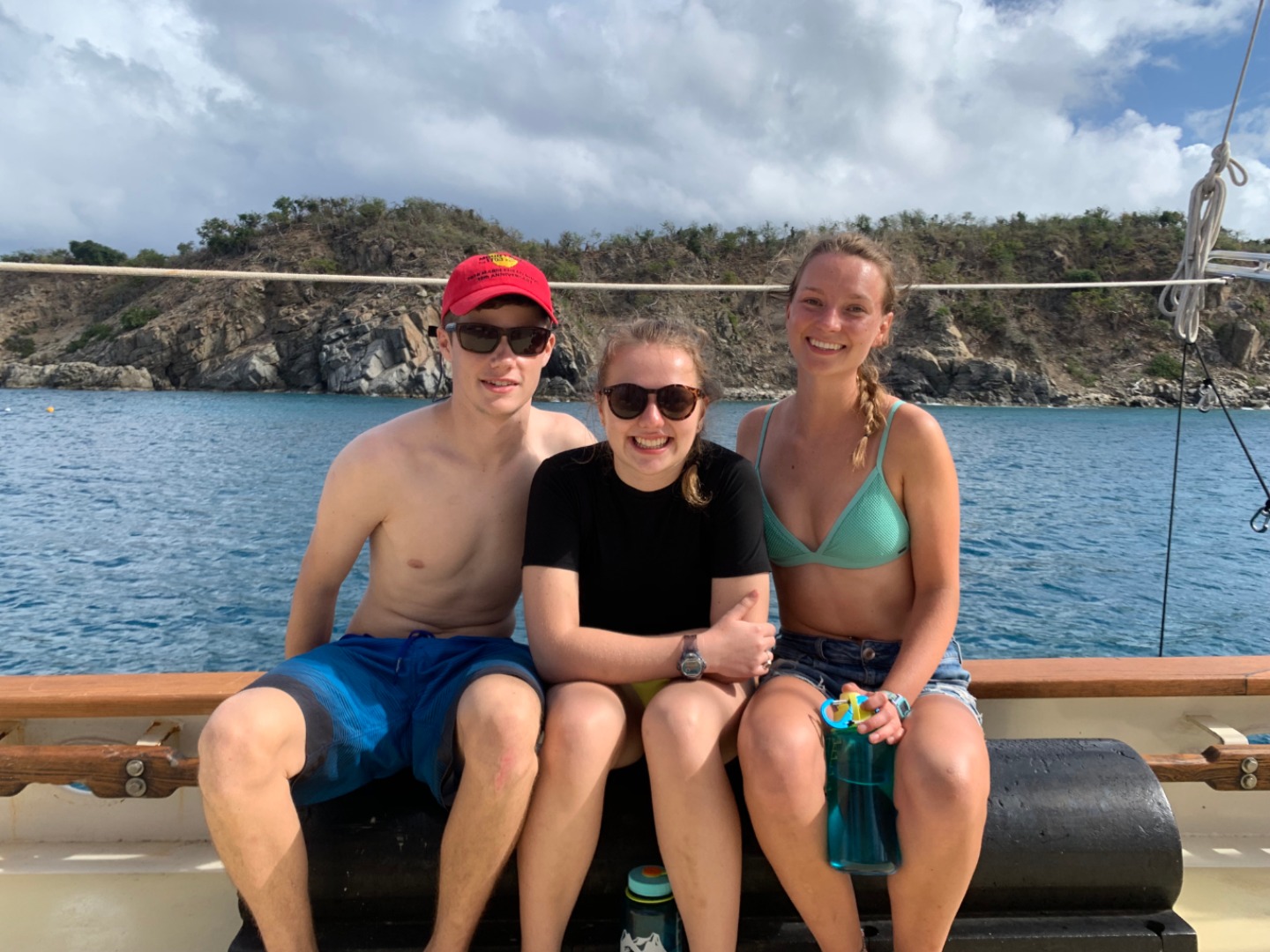 two real dives. While most of us just sawfish and corals, Tina’s group was extremely lucky to be approached by a hawksbill turtle on the first dive of the day! For lunch, Dan and Miranda made quite possibly the best-grilled cheese sandwiches in the entire world. They were the perfect balance between crispy and cheesy. After the second dive, we all realized how fun showers could be when you’re jumping in the ocean with friends. When we all dried off, we took a nice long break from all of the fun and excitement to study, nap, and journal. Many of us ended up sleeping on deck after finishing drafts of our leadership autobiographies. We are all very much looking forward to our first oceanography lesson tonight with Alex and our sail in the morning to Peter Island.