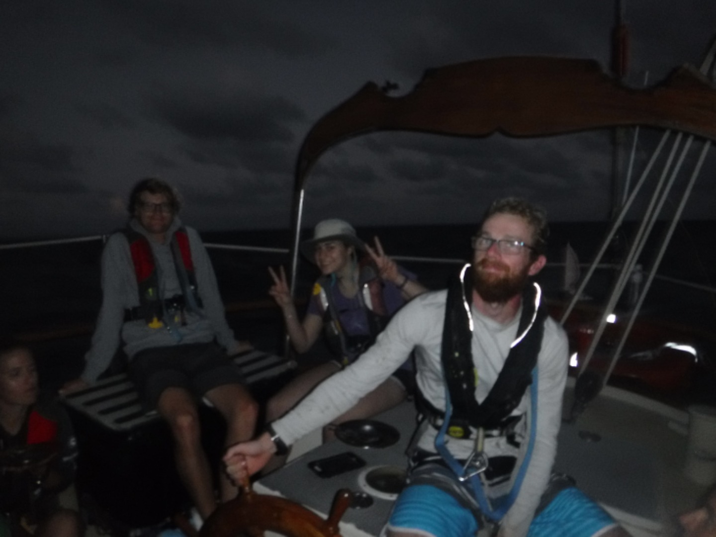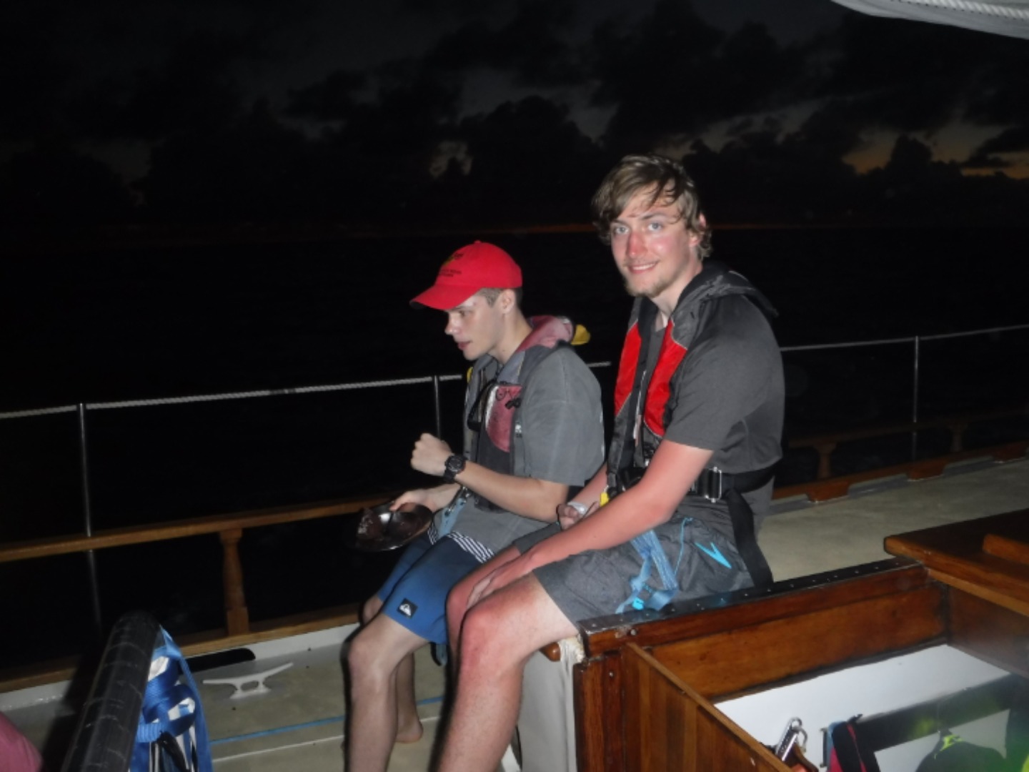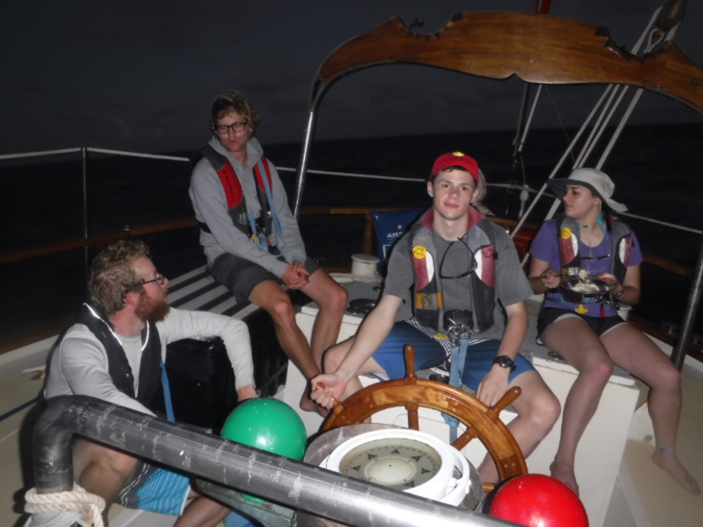 After dinner, we managed to surprise Dan with a tasty chocolate cake and card for his 21st birthday, HAPPY B-DAY DAN! To finish out, we all joined together for “the squeeze,” which is where we hold hands and share what we appreciated about the day and answer a question that changes night tonight. There was an overwhelming appreciation in the group for the beauty of the day and the positivity of the group. Now we’ll do a couple more watches, and soon we will be reaching our first destination, the British Virgin Islands!!