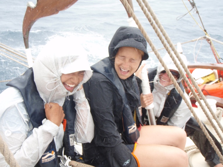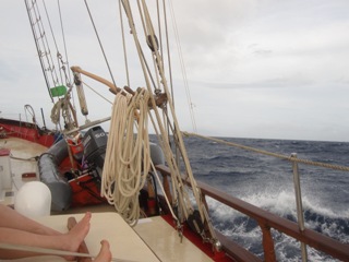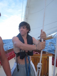 Well, we started off our passage to Nevis with lasagna as our dinner. Three of the four pans survived; the fourth was tossed from the oven into the salon, making the clean-up interesting as we headed through the waves. Although it was very good, half of our crew (myself included) soon discovered it was not as tasty on the way up. Seasickness was brought sometime around sunset and, for some, continued on to the morning. On our way to Nevis, we passed Saba, St. Eustatius, and St. Christopher, as well as four squalls! With the waves up to 8ft high and the wind strong, the last squall lasted the longest. A few waves poured over the bow and onto the deck, making it an exciting adventure (don’t worry, moms and dads, we were all clipped in the entire time on deck)! Because the waves and wind were coming from the direction we were heading, we tweaked our course a bit and set back our E.T.A. from 5:00 pm to 9:00 pm, all the more time to get acquainted with the sea! All in all, our first passage was a successful one, and we all arrived in Nevis safely.