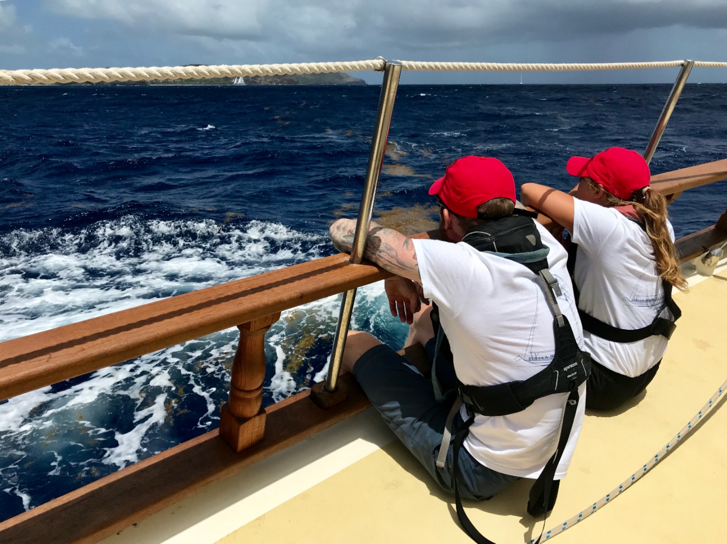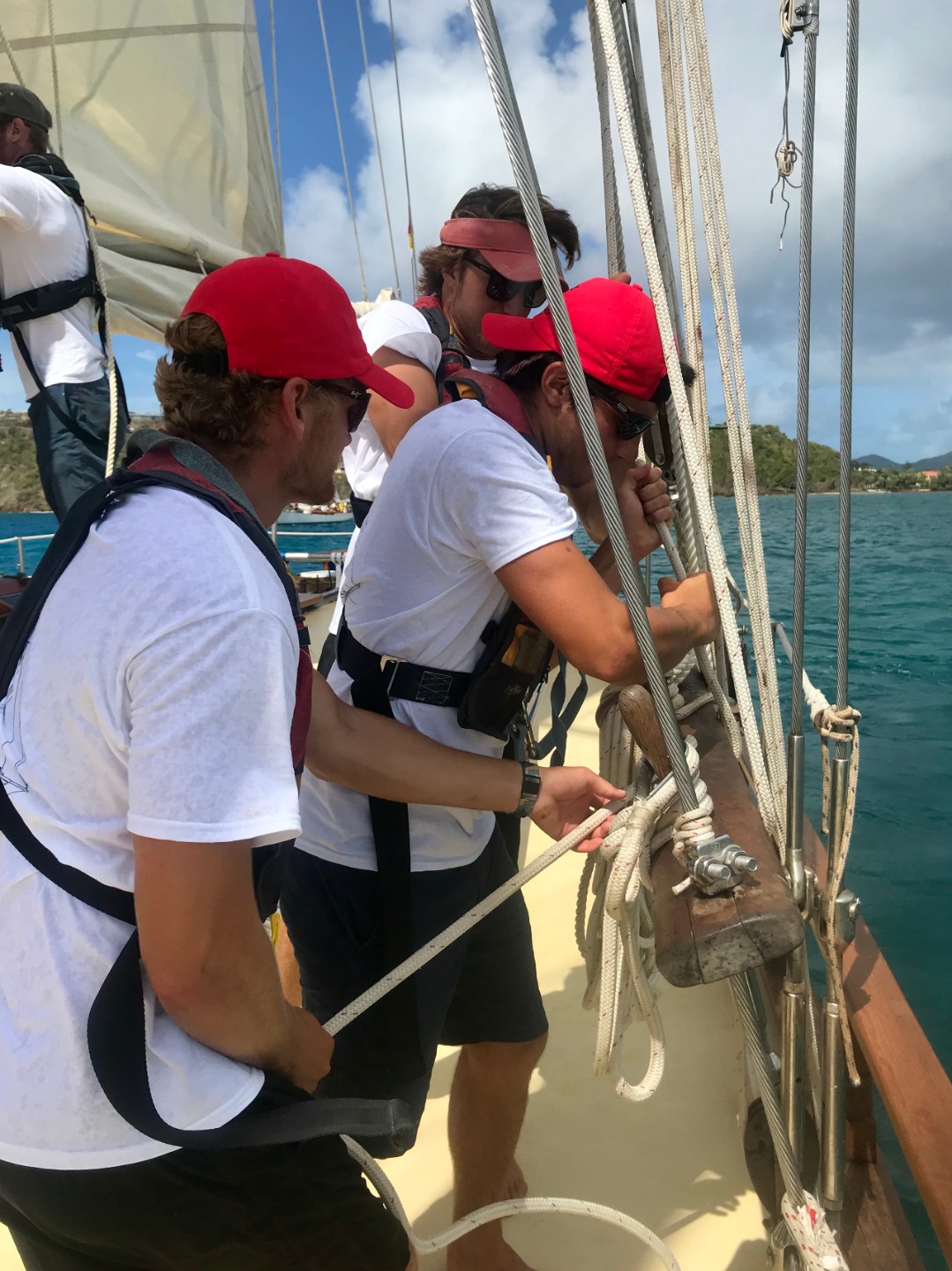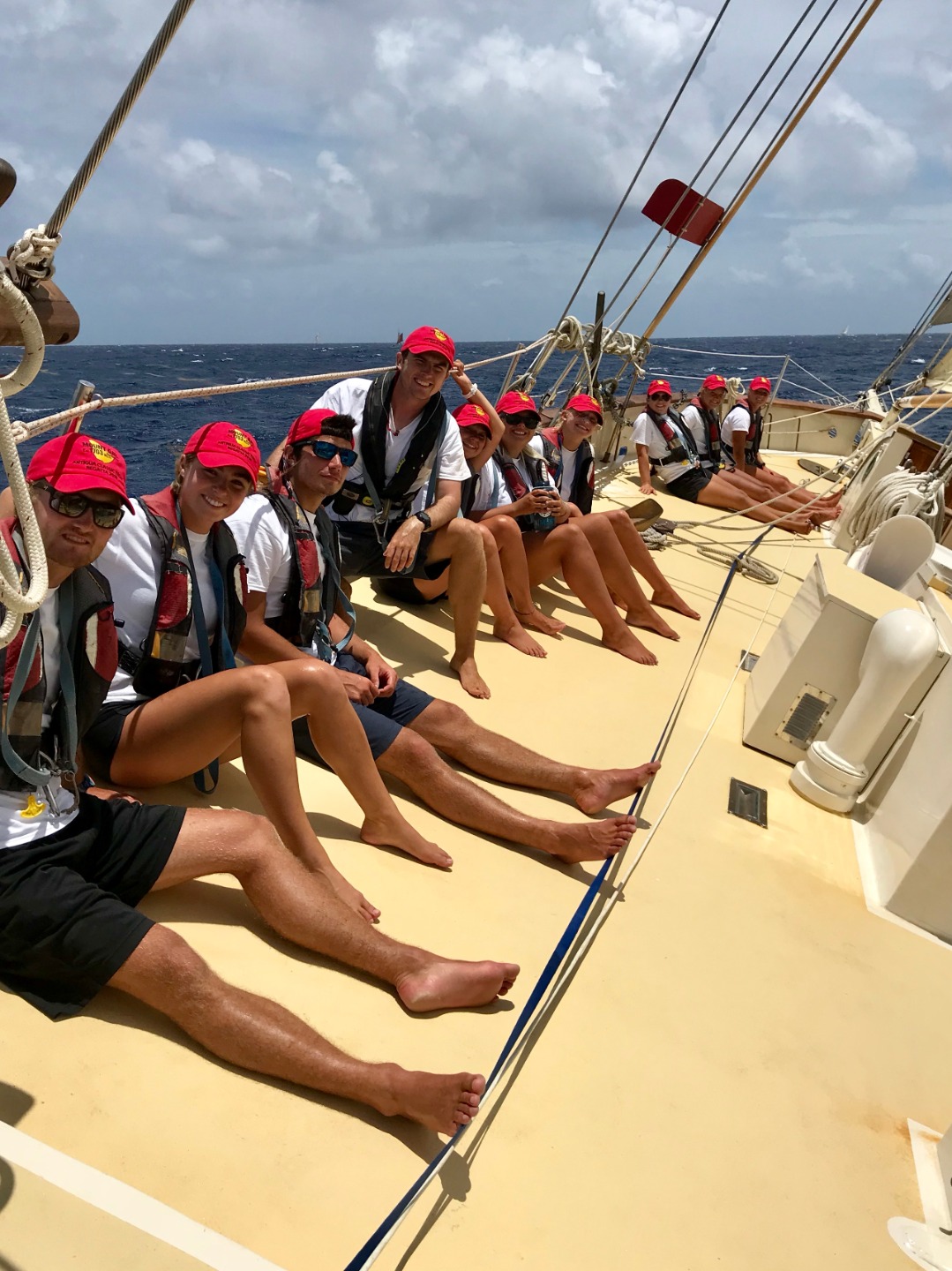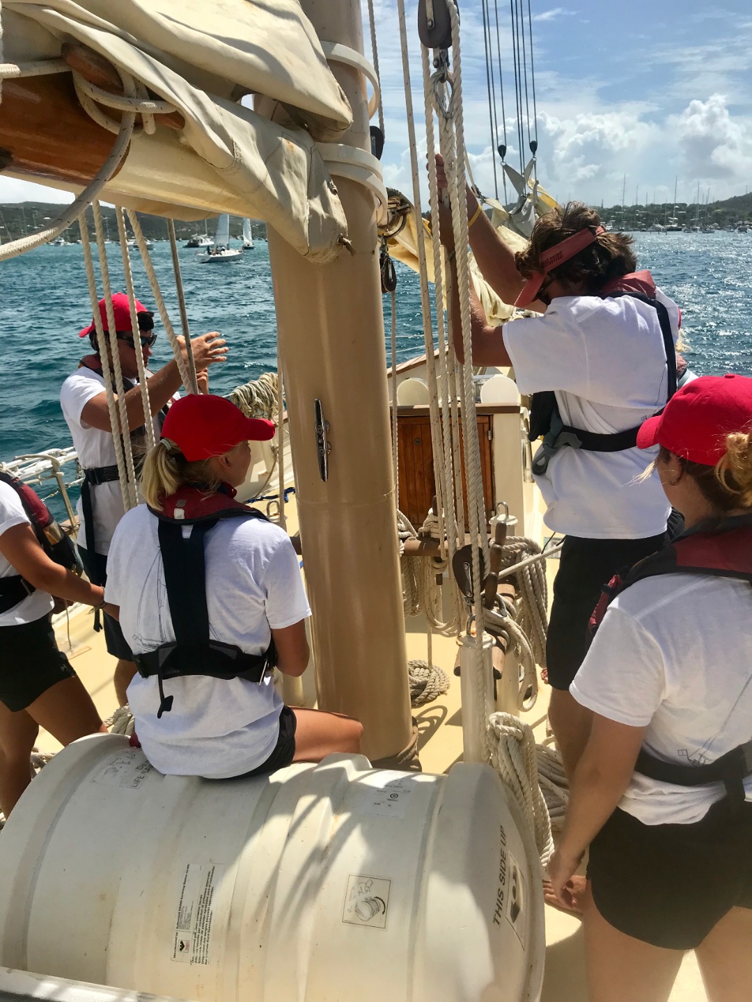This morning we had an early wake up at 6:30 in preparation for race number one of Antigua classics week. We had a breakfast of granola prepared by Elle and Steph, and we went straight into passage prep. We departed from the dock around 9:30 to scope out the racecourse and practice a few tacks and gybes. We had an amazing start at 10:45, and we were off! We raced from 10:45 am to around 3 pm. There was an open mic sea shanty competition, so once we were back at the dock, we had to prepare our song. We took a song from Lucys camp and changed it to fit sea life more. The boat mahjong, Mary Rose, Ruth (Ian insert the boat that went after us), and us. We all ended up winning a prize (I dont know if you want me to say what it is, Ian, hahaha), and Peytons dad came to visit! He also ate dinner with us. After dinner, we had a seamanship class in which we studied dead reckoning and running fixes. Tomorrow we have race number two! Olivia