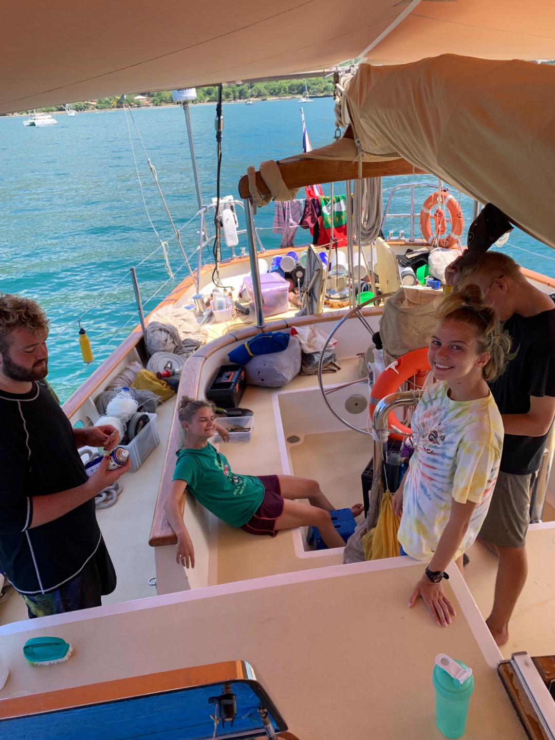 We awoke to a nice breakfast consisting of cereal. It was a nice change of pace after eating oatmeal for breakfast for 19 days in a row. After breakfast, the crew got into a long session of cleaning and maintaining Argo. The crew was split into two teams. One worked up on deck, and the other worked below decks. We did things such as scrubbing floors, cleaning the galley, and rust busting the deck and hull. Afterward, Argo looked as good as new. We worked hard until lunchtime. After lunch, the crew started to do trips to shore to visit customs. On the short boat ride over, many jokes were made about how all of this was just a dream, how we were actually still at sea, and how we were all going to wake up right before setting foot on land.