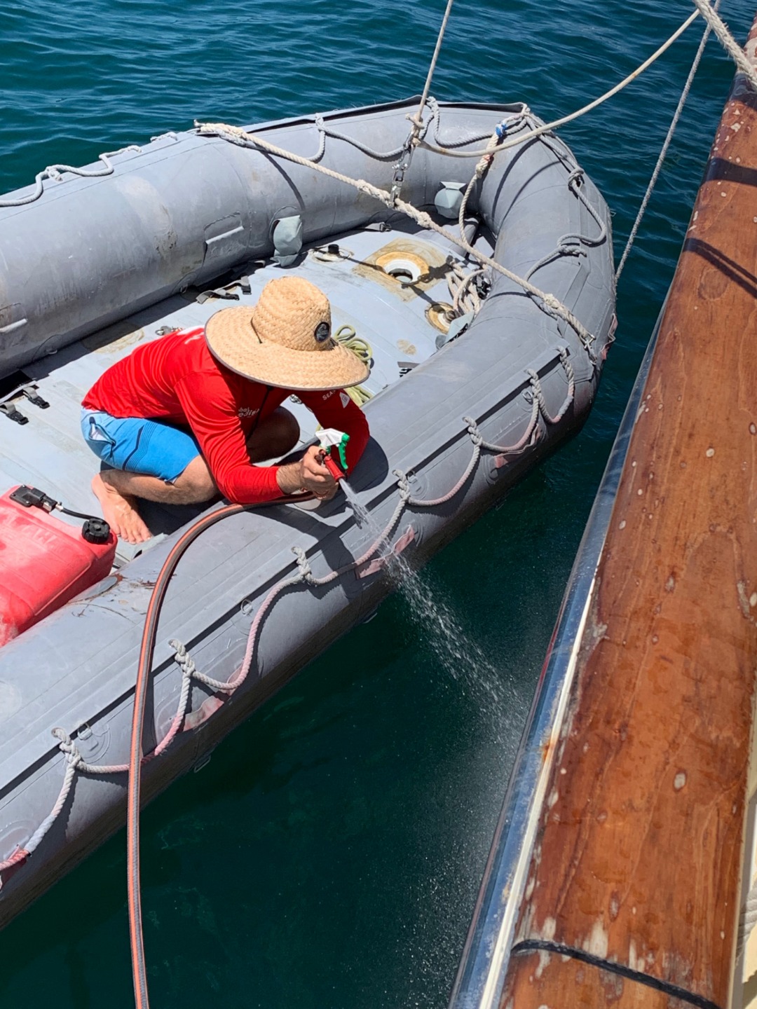 Ian is scrubbing the hull.