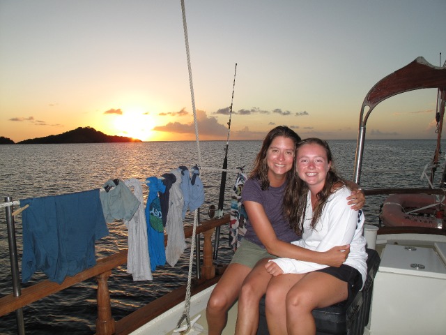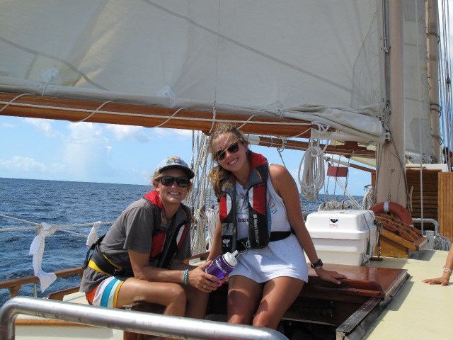 Today was extraordinary, in my opinion. The morning started off at 6:55 AM when I ran down into the saloon to put on music and wake everyone up. But instead of sleepy shipmates, I found the chefs were already cooking, music jamming, and the rest of the crew already up and hangin’, waiting for a delicious breakfast of fresh baguettes to be served. Following breakfast, we commenced with passage prep and got the boat ready to move onwards with our journey north. When our beloved Ocean Star was ready to rock, we gathered all the shipmates into the cockpit and surprised them with the opportunity for their first student-led passage. It was up to them to get us from our little anchorage next to Pan de Sac in Les Saintes up the coast of Guadeloupe and safely to our destination anchorage near Pigeon Island. The passage went absolutely flawless as Ocean Star sped along on a beam reach with three sails up and quite a bit of breeze. We even reached speeds of almost ten knots! It was very cool to see how the crew came together and used each other’s strengths and specialties with regard to getting all the sails up, navigating, engineering, helming, and anchoring the boat. When we finally all sat down for a Mexican Fiesta for dinner this evening, everyone had a side of the well-deserved sense of accomplishment on their plates. Bravo crew! Now, seeing as we are anchored next to one of legendary Jacques Cousteau’s favorite Caribbean dive sites (see tomorrow’s blog as we are about to dive it in the AM!!), we thought we’d watch a Bill Murray comedy flick produced in his name, “Life Aquatic.” With that, I leave you all; I’m off to the Ocean Star movie theatre on deck- popcorn included!!