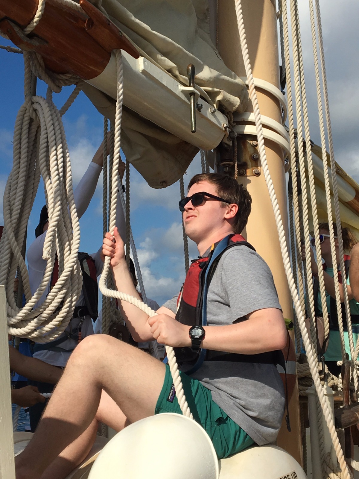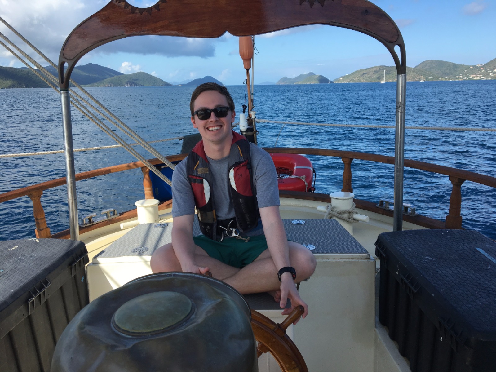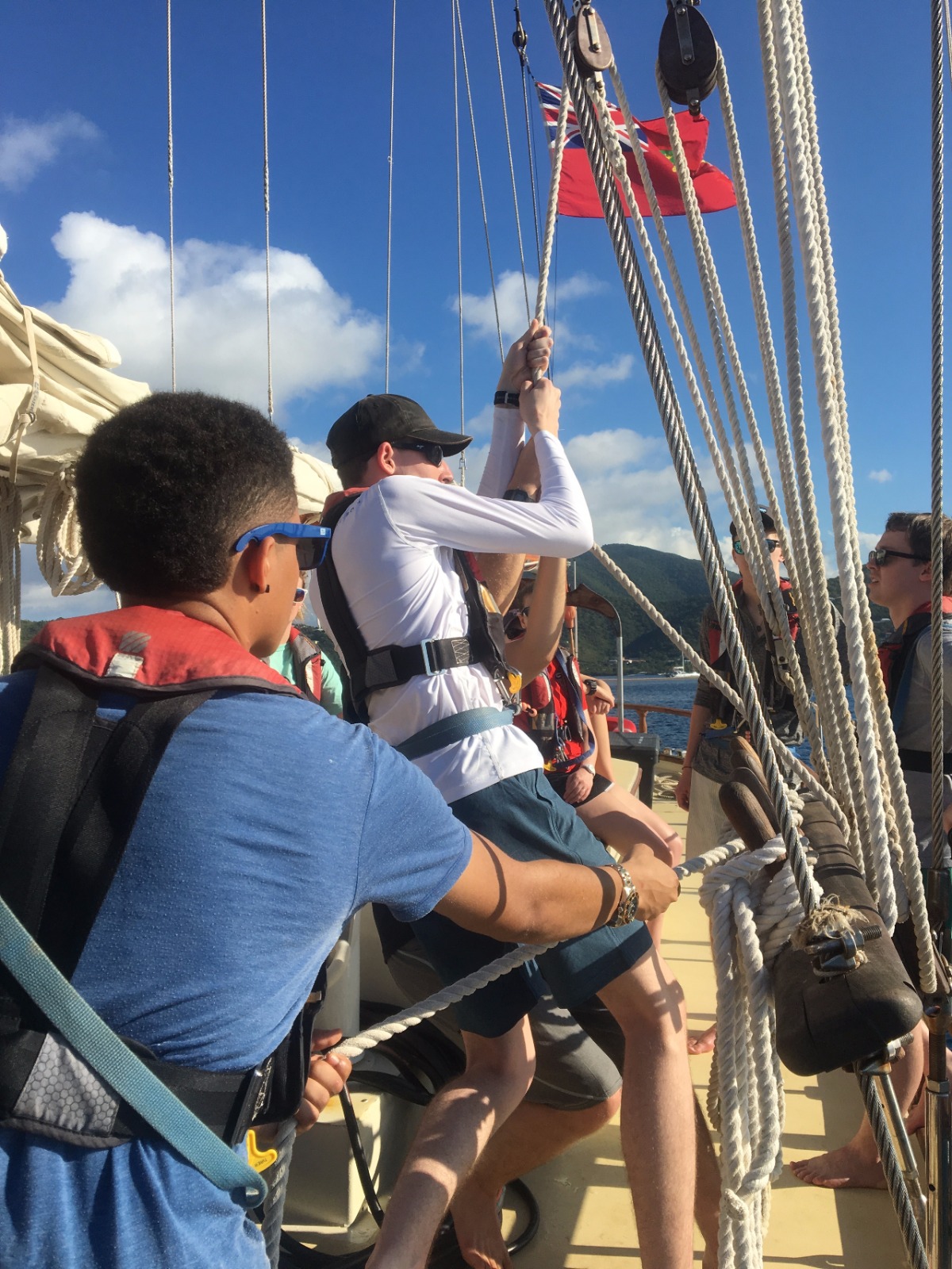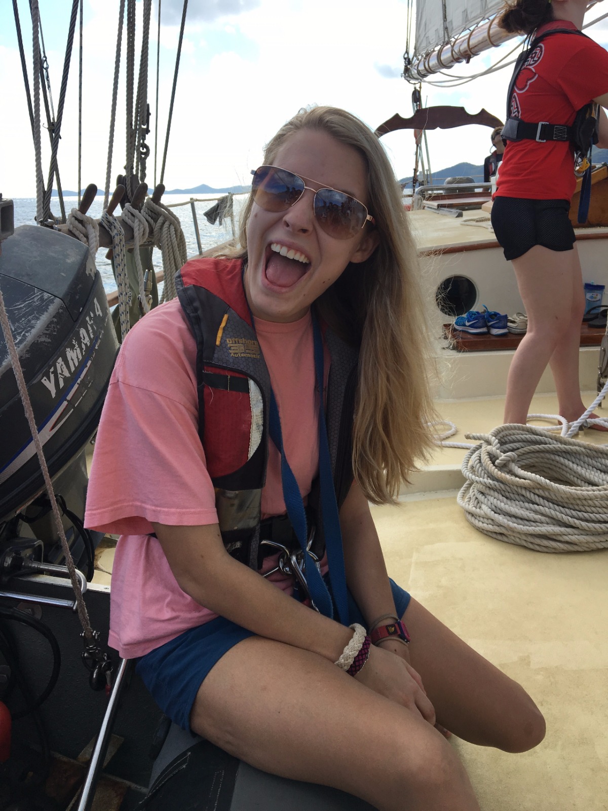 Today, we set sail for the first time to experience what it feels like to coast through the water, the wind carrying us towards our next destination. After making it off the dock, we ate breakfast and learned how to raise the sails and change their direction as we spun in circles in the water. Once we made it to Peter’s Island, we finally got to jump off the boat and felt the Caribbean waters as we took our swim test. Those undergoing their open water PADI training then got their first chance to dip their heads beneath the calm shores of the island and experience what it feels like to breathe underwater. Hovering over the white sand with meters of aqua blue water above my head was beyond magical. Returning to the boat, we were greeted by those already certified, and we quickly ocean-showered and prepped for our taco dinner. With the boat next door bumping the tunes, we got a quick lesson in proper boat etiquette and what not to do while in a peaceful bay. As the deck was cleared and cleaned after dinner, we were headed back to our dive class so we could continue to explore the aquatic world underneath our feet.