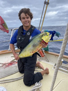 I started off the morning with an early wakeup (boat standards) at 7:30 am for my 8 am watch. Watch went pretty smoothly, thanks to Xavier’s alien friend Pedro. To give a brief description, Xavier and I saw Pedro’s UFO a few weeks ago. Xavier was able to communicate with it telepathically; I, however, was not. I think it has to do something with being Hispanic but not being able to speak any Spanish. Anyways, Pedro can only speak Ecuadorian alien slang, so only Xavier can talk to He, She, They, whatever they aresomehow, we have adopted them into our watch as our guide to a safe passage. I think Pedro gave Rob some good luck as one of our fishing lines got hit. Rob was able to bring in a beautiful blue and green mahi mahi. Rob fileted the fish perfectly, and Anna did a short dissection for the students. After lunch, we had our oceanography exam and seamanship. In seamanship, we are starting to work on our Nav master. We just finished having lentil curry with a side of mahi mahi. I am almost at the end of my watch, so soon enough, I will be able to get some shuteye for my 4 am watch.