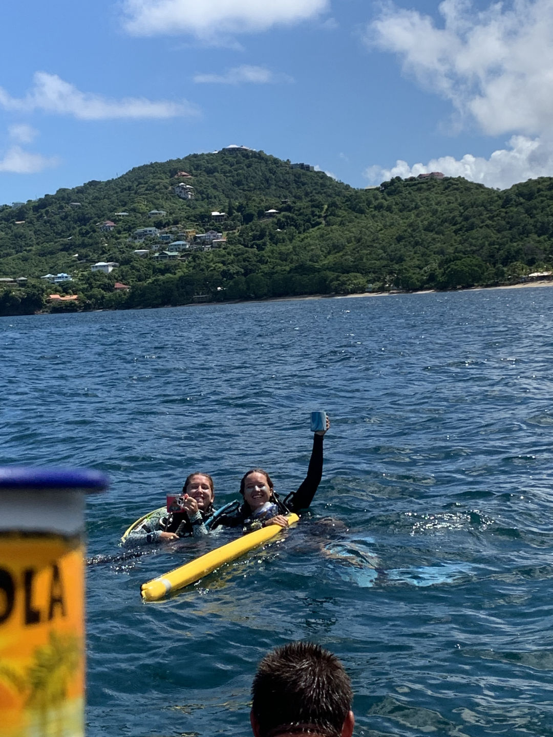 Photo 4: Steph and Heather enjoying their surface interval coffee prepared by the ultimate surface support; Drew