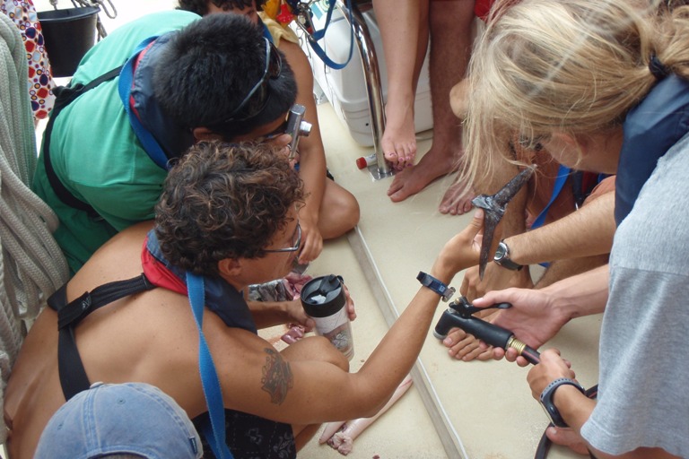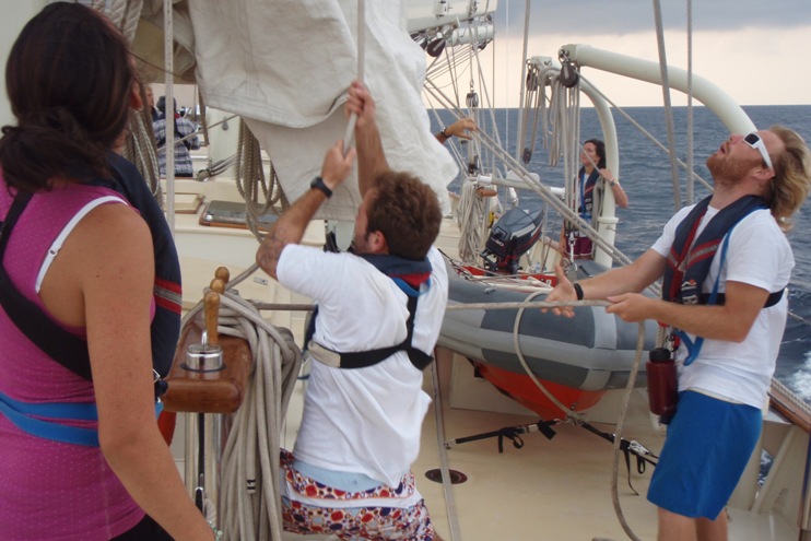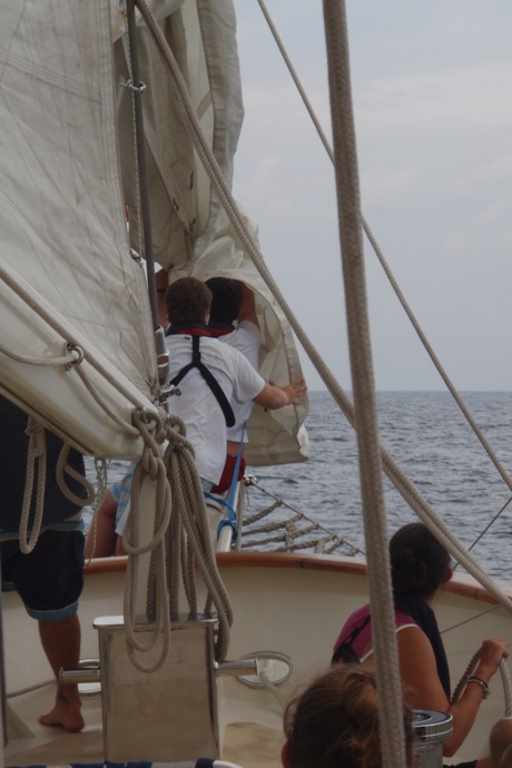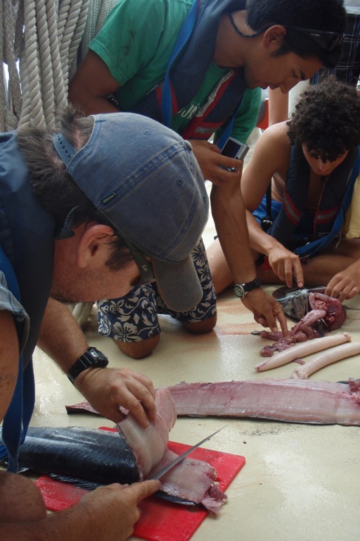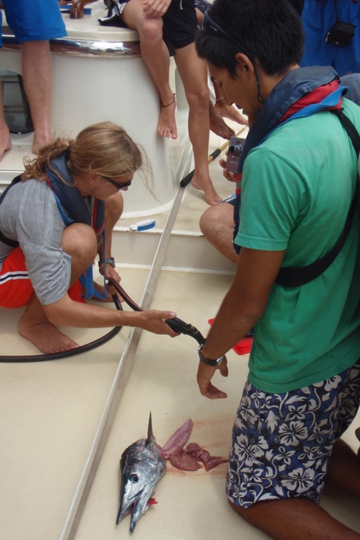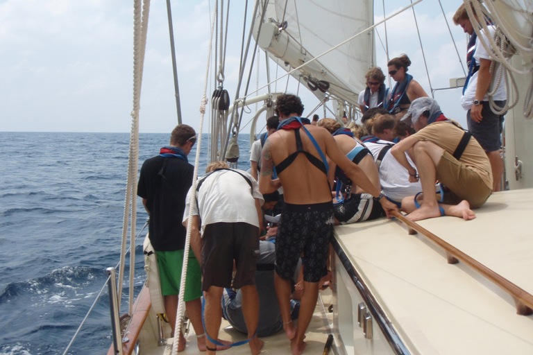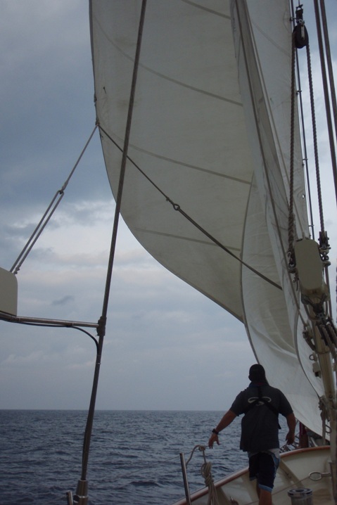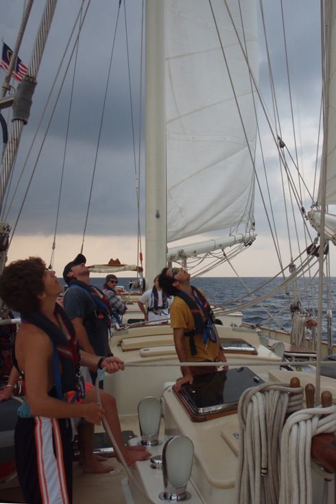 Today was an exciting day on Argo. Our trip log at 10:30 am was 617 nm from our departure point in Phuket, Thailand, on Day 1. We are passing north of Sumatera, heading out of the Andaman Sea. We have spent the majority of passage so far motor sailing in hopes that the wind would pick up. Early this morning, we raised the fisherman and flying jib. We are currently sailing engines off, under full sail, on a broad reach. Shipmates are beginning to get their first taste of the seas, steering under sail, and the heel of the ship. Also, today, we caught our first fish. The fish was a wahoo big enough to feed us all with a delectable Cajun dinner.